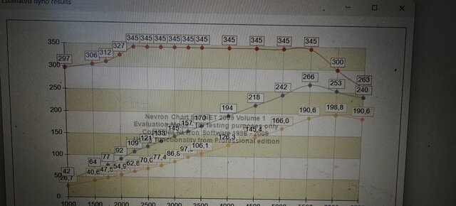 Das Problem, Du bekommst ja den ollen Garrett nicht hinterlegt, Daher ist die Leistung natürlich nicht darstellbar. berüksichtige ich aber das Schleppmoment des 900 mit der Primärkette und wir nehmen 3600 Umdrehungen an paßt das recht gut. Mit was modernem, was kommt, wird das sehr gut passen. Ich würde bis 3200 den Druck langsam steigen lassen, um dann bis Ende auch das Drehmoment weitest zu erhalten. Eine Leistung von 280 -300 PS sollten sogar mit einem 15T machbar sein.