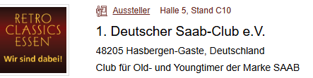 SAAB-Club Stand auf der Retro Classics Essen vom 08.-12.04.2026