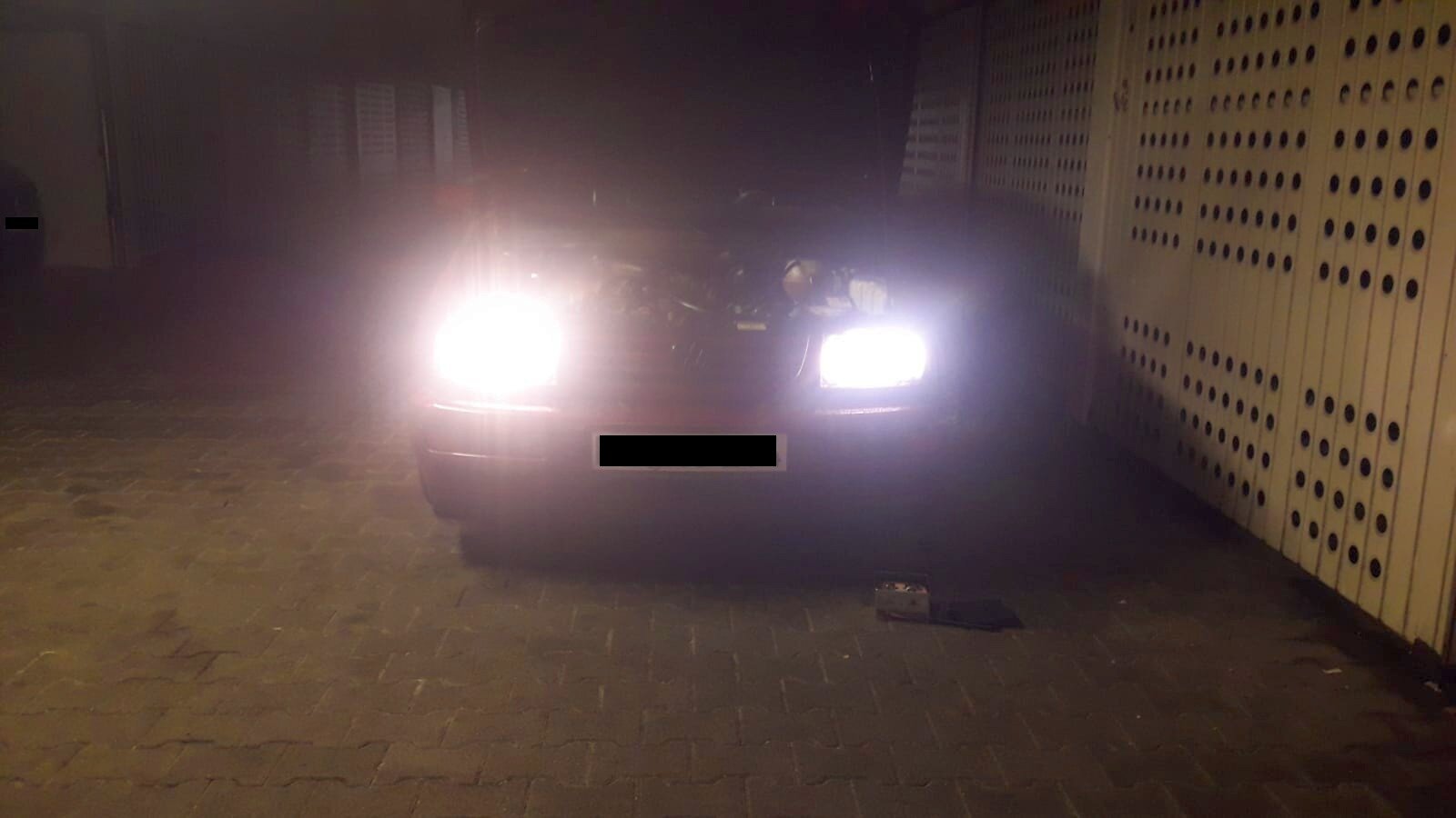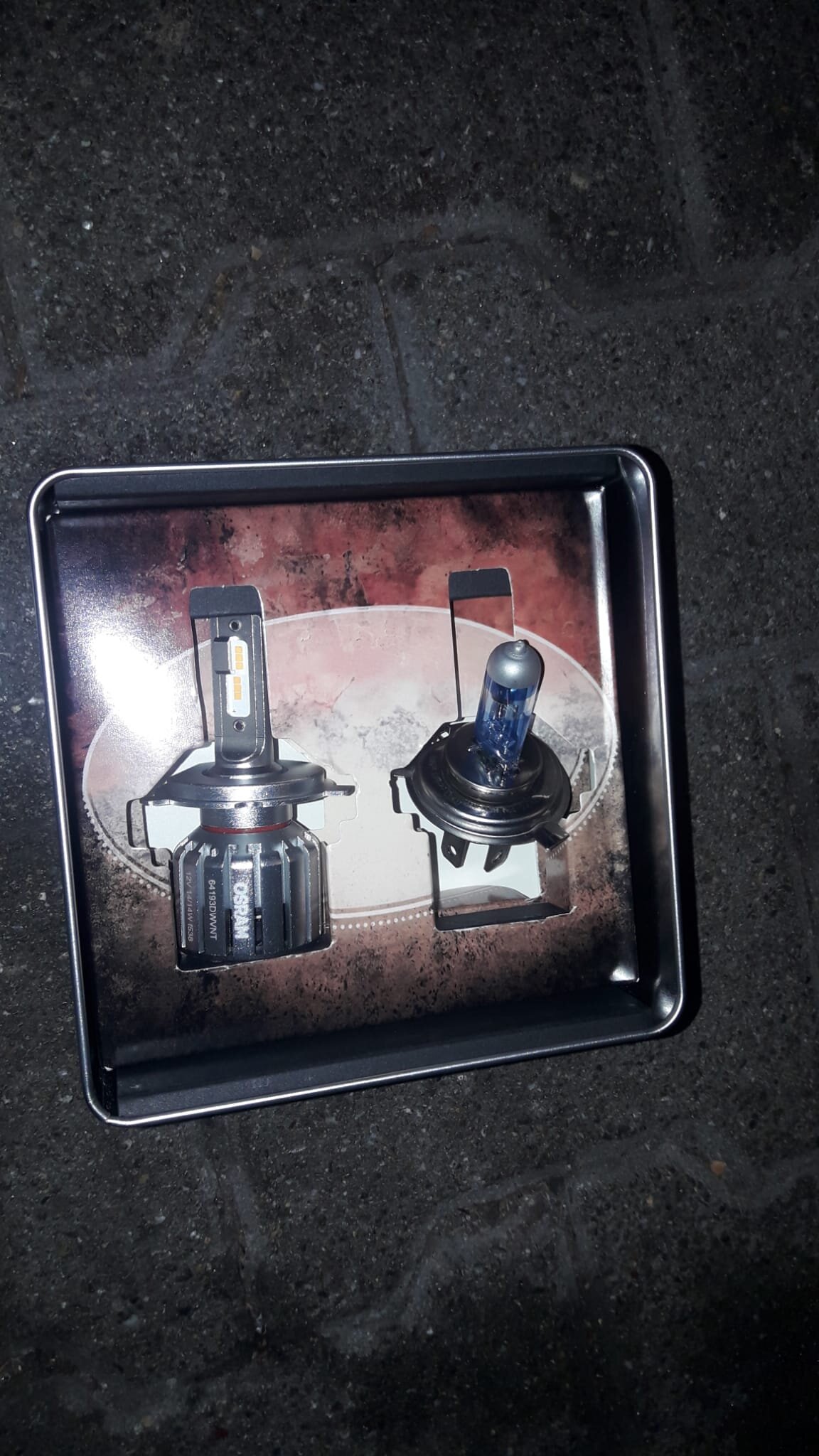 Ich hatte die Osram Ledriving HL Vintage als H4-Retrofit nun für einige Zeit im Fahrzeug (Kein Saab). Betonung auf hatte, denn ich habe die wieder ausgebaut und werde diese zurückschicken. Das liegt an der viel zu gelben Farbtemperatur. 2700 K ist zu extrem und wirkt nach Bilux-Lampe oder Kiste mit maroder Elektrik. Wobei ich das beim Testobjekt auch behaupten kann, ohne Relaisschaltung liegen unter Last + laufendem Motor 12,1 - 12,2 V am Lampenstecker an, mit Relais sind es 13,5 V. Die Bilder sind schlecht, ich wollte mir einfach einen persönlichen Eindruck von den Lampen machen. Beifahrerseite die erwähnte LED, Fahrerseite die Osram Nightbreaker 150 H4. Dabei fällt es "nicht weiß genug aus", weil --> Der Motor lief nicht (Zündung an) + die Relaisschaltung war ausgebaut (LEDs brauchen das nicht wegen ihrer geringeren Stromaufnahme bzw. el. Leistung) Der breitere Lichtkegel ist hier sichtbar. Links Halogen, rechts die LED. Das Bild entstand während der Fahrt, ist also verwackelt. Aber ja, so geblich ist das wirklich. Dafür überzeugte mich, dass weniger Licht "geschluckt" wird. Mein Fazit: Die Lichtausbeute im Nahbereich fand ich nicht signifikant besser. Dafür die im Fernbereich und besonders in die Breite (Straßenrand). Auf nasser Fahrbahn wurde weniger Licht "geschluckt" als beim Halogenlicht. Das Fernlicht empfand ich als enttäuschend. In Summe nervte mich das zu gelbe Licht, nicht einmal die Allwetterlampen (Hatte ich mal) waren so gelb. Fühlte mich wie in einem alten Peugeot 505 in der Heimmarktausführung... bzw. deutsche Fahrzeuge für Frankreich hatten auch gelb gefärbte Streuscheiben...
