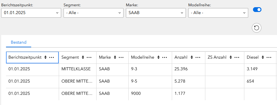 Hallo zusammen, ich wollte mal schauen, wie die Saab Situation in Deutschland so aussieht und habe im Statistikportal des KBA gestöbert: https://experience.arcgis.com/experience/4fe31a1cadce449bb27045ca2fafb9d3/page/Fahrzeuge?views=%2F-Bestand Zum 01.01.2025 sah der Bestand (Filter auf Marke = Saab) wie folgt aus: Soweit erwartbar. Andere Modelle werden nicht gelistet denn "Beim Bestand werden nur Modellreihen mit mindestens 1.000 Fahrzeugen und von Fahrzeugen mit einer Erstzulassung ab 1990 ausgewiesen.". Interessant wird es allerdings einige Spalten weiter hinten. Demnach gibt es wohl einen batterieelektrischen Saab 9-3 (nicht NEVS?), einen Saab 9000 mit Allradantrieb und zwei Saab 9-5 Cabriolets irgendwo in Deutschland - so meine Interpretation. Wer kann die Rätsel auflösen? Gruß Kraftstoff