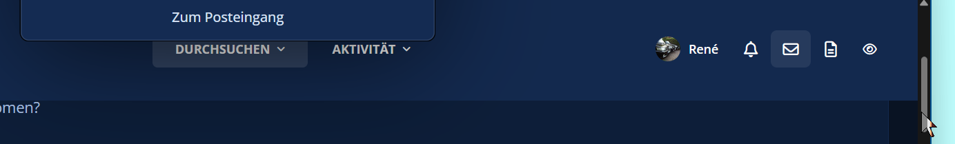 Wenn so etwas mit irgend einer kurden Kombination auftritt, kann das ja auch durchaus mal passieren. Aber als allgemeines system- und browserübergreifendes Problem sollte so etwas beim internen Test nicht durchrutschen. Sehr gut! (Sicher nicht nur) Ich danke Dir! PS: Was sich meines Erachtens noch geändert hat ist, dass die aufploppenden Fenster (z.B. "Nachrichten") jetzt jeweils mittig unter ihrem jeweiligen Symbol und nicht mehr Bildschirm-mittig direkt unterhalb des des oberen Bildschirmrandes erscheinen. Ist ja kein Fehler oder Problem, ist mir nur gerade so aufgefallen.