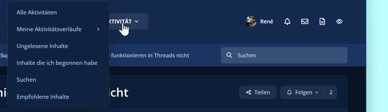 Button / Links in der Kopfzeile funktionieren in Threads nicht