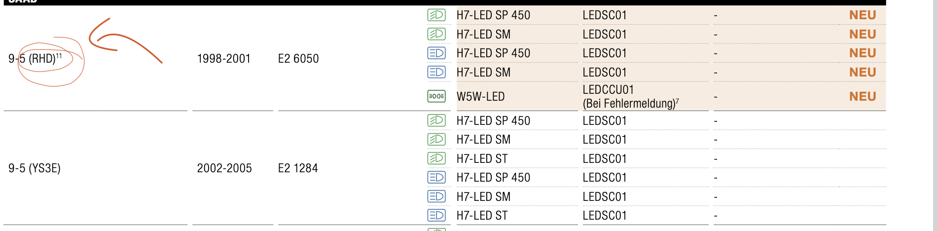 Hey, Osram hat ja kürzlich eine neue Liste eingestellt: Der 9-5 OG scheint nun als Rechtslenker dabei zu sein, ist das auch auf deinem Mist gewachsen? Und wo in der EU gibt es Linksverkehr, haha? ;) Im Umkehrschluss wollte ich einmal fragen: Heißt dass, auch der neue Anlauf beim 9-3 OG (YS3D) ist durchgefallen? :/ GLG Moritz