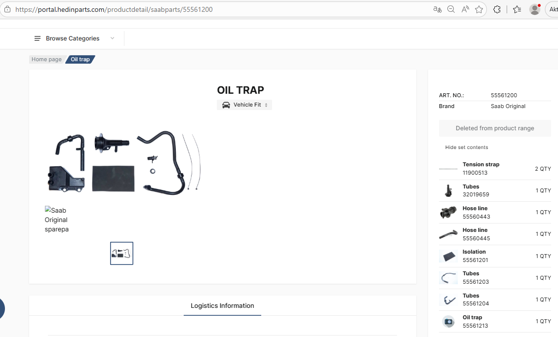Die Einzelteilliste verrät Hedin. jedoch fehlt der O- Ring 9138108 für den Öltrichter, da jetzt von Proparts. Beim Saaboriginalteil ist der dabei. Außerdem ist der seltsam gefertigt, der 710 er Deckel ist nicht mehr in Endstellung waagerecht.