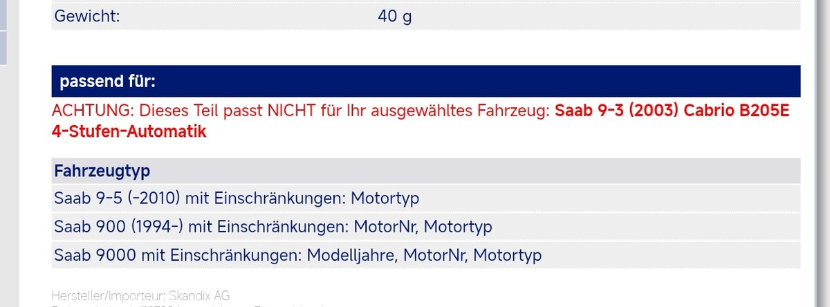 Ich habe heute bei Skandix gefragt, was es damit auf sich hat. Antwort: Die Teilenummer passt nicht zu meinem 9-3. Hilft nicht, aber danke 😉