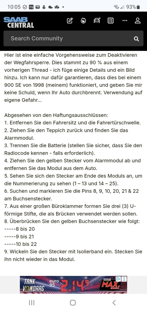 Hallo Zusammen! Der Titel sagt es bereits: unser Saab will nicht mehr! Von jetzt auf hier: aus die Maus! Wir hatten vor kurzem schon mal das problem, der ADAC-Mann (hier ANWB) hat aufgegeben! Schlussendlich eine andere Batterie rein, den Frosch mit 5x eindrücken wieder aktiviert und alles war okay! Heute abend - ohne irgendeinen Grund - springt er wieder nicht an. Beim starten wird das Display um den Tacho schwarz (ist das normal - ich hab das Auto selber nur tagsüber gestartet) und außer dem Startmotor passiert nix! Den Frosch gefühlte 200x probiert zu aktivieren: kein Resultat! Danach dachten wir: vielleicht die Batterie im Frosch zu schwach - diese gewechselt. Danach hat der Frosch das Auto auch nicht mehr geöffnet, starten nach wie vor nicht möglich, aber auch das rote Licht am Armaturenbrett/ bei der Frontscheibe (Alarm?) blieb blinken. Sowohl vor als nach dem Batteriewechsel die Batterie für 1 Minute abgekoppelt (hab hier irgendwo gelesen das das helfen kann): nix! Inzwischen ist die Batterie natürlich so gut wie leer... Was kan ich tun??? Neue Batterie? Den zweiten Frosch benutzen und DANACH den anderen wieder anlernen? Bin etwas ratlos.. 😬🙄 Gruss, Frank