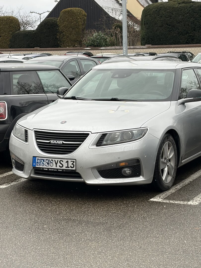 Was für ein toller Lichtblick heute beim Donau Einkaufszentrum in Regensburg. Schöner silberner Saab 9-5 NG Aero Allrad aus Ostbayern mit Kennzeichenhalter vom Saabzentrum Kiel.