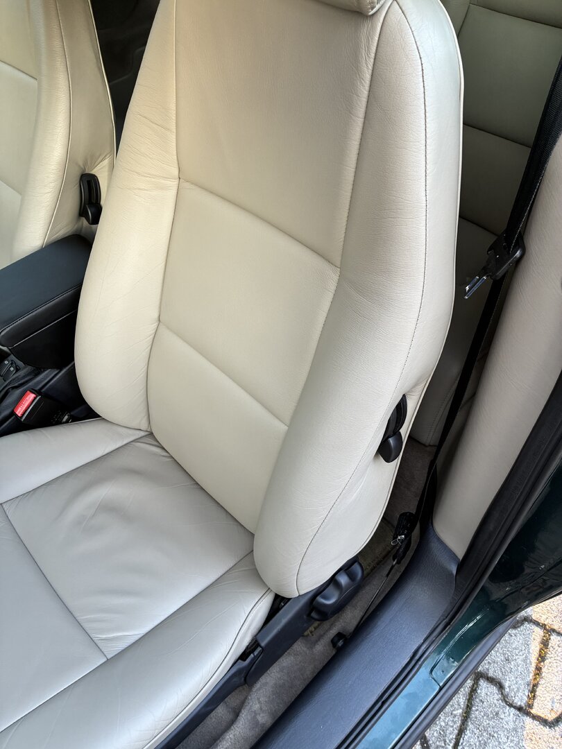 Hallo zusammen, Ich habe jetzt vor dem Start der Saison die Seitenwangen und die Sitzfläche des beigen Ledersitzes Fahrerseite bei meinem 1995 Cabrio neu einfärben lassen. Neubezug war nicht notwendig! Sieht gleich wieder ganz anders aus👍 Anbei die Vorher/Nachher Bilder Was meint ihr dazu ?