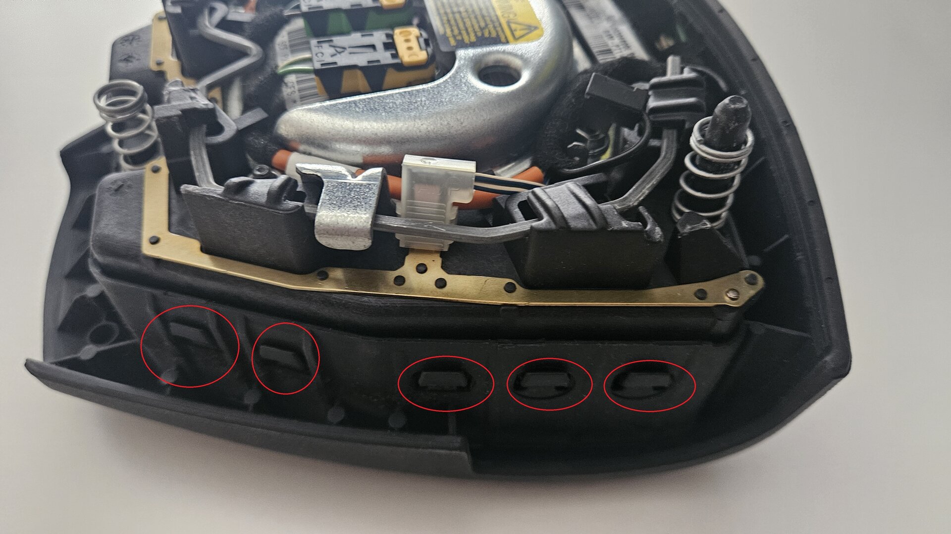 Ich möchte gerne den Mittelteil des Lenkrads tauschen / Abdeckung des Airbags - mein Saab-Emblem und der Kunststoff sehen nicht mehr ganz frisch aus und ich habe ein schöneres Austauschteil in meinem Besitz. Dabei habe ich Schwierigkeiten, das Teil abzulösen - siehe rote Markierungen. Kann man das überhaupt einfach so wechseln? Gibt es das einen Trick oder Spezialwerkzeug? Freue mich auf Tipps und Tricks.
