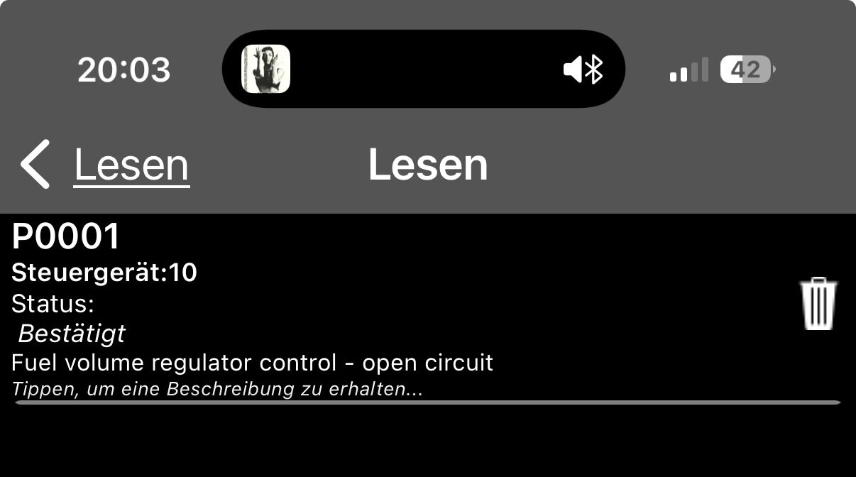 Vielen Dank René!!! Ich habe zwischenzeitlich auch den Leerlaufregler gereinigt. War augenscheinlich nicht besonders verschmutzt, aber die Reinigung schadete sicher auch nichts. Aber weder die Reinigung der ECU Pole noch des Leerlaufreglers hat wirklich etwas entscheidendes an meinem - insbesondere im Kurzstreckenverkehr bei noch nicht wirklich warmen Motor - etwas unruhigen Leerlauf gebracht, der immer ein bisschen nach unten schwankt und sich dann wieder fängt. Jetzt bin ich noch ein bisschen offtopic, ich hoffe, Ihr verzeiht mir das: Das ELM327 ist heute gekommen und ich habe es gleich eingesteckt und mit der Software verbunden. Ausgewiesen wird mir die Fehlermeldung P0001 (siehe Foto). d Ich kann die Fehlermeldung zurückstellen und das "Check engine" verschwindet, wenn ich den Motor weiter laufen lasse. Aber beim Neustart kommt die Meldung im Display sofort wieder und wird auch auf dem OBD Programm wieder angezeigt. Der Blinktest des Displays zeigt durch 6faches Blinken einen Lamdasonden-Fehler an. Passt P0001 vielleicht zum Lambdasondenfehler und kann das ganze womöglich Einfluss auf den Leerlauf haben? P0001 hat ja wohl mit der Spritzufuhr zu tun. Komisch bleibt aber natürlich, dass der Fehler auftritt, seitdem ich den ECU Stecker ohne Abstecken der Batterie ab- und wieder angesteckt habe. Über eine kurze Einschätzung würde ich mehr mehr als freuen..... :-)