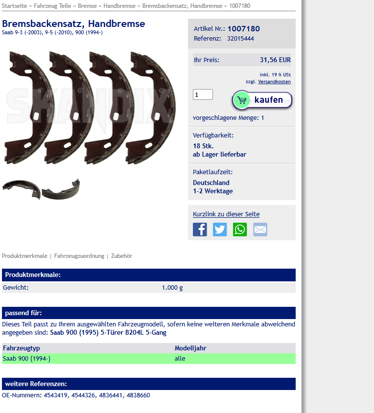Da lobe ich mal die spezialisierten Saab-Teile Anbieter. Bei zwei der bekannten Firmen habe ich eben testweise nachgesehen, und beide weisen explizit unterschiedliche Teile(nummern) für die Bremsen der Modelle jeweils vor und nach der Änderung aus. Und ist alles noch lieferbar.