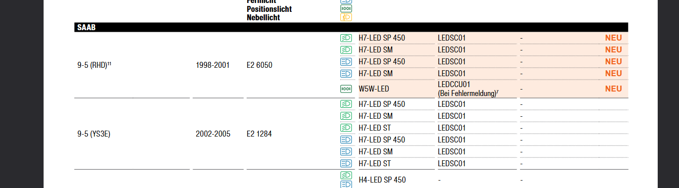 Ich fahre seit 7 Jahren die H7-LED von Philips. Bin ganz zufrieden. Natürlich blenden die etwas mehr als die Halogen, aber mittlerweile ist das normal. Moderne Scheinwerfer blenden auch, wenn man selber noch Halogen fährt :-) Übrigens sind die Saab-9-5-Xenon wirklich schlecht. Ich hatte damals mal den Vergleich gemacht: Von oben nach unten: Osram Halogen - Standard Birne Phillips LED Neverland LED P7 Neverland LED P6 Osram Xenon - altes Leuchtmittel Osram Xenon - neues Leuchtmittel Fotografiert im Keller gegen eine weisse Wand. Immer der gleiche Aufbau und die gleiche Kameraeinstellung. :-)