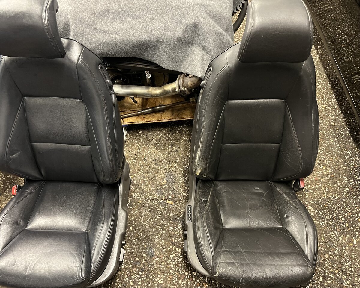 Ich habe aus einem Rechtslenker Saab 9-3 YS3D 2 x E-Sitze im Viggen/Aero Style mit „Turbo“ Schriftzug bekommen können. Exakt wie meine Sitze in 2002er Cabrio. Der Fahrersitz der zugekauften Sitze ist praktisch hinüber (u.a. Loch im Leder ..), aber der Beifahrersitz ist super (siehe Bilder, nach Aufbereitung mit Lederzentrum „Farbauffrischer“ und „Elephant-Fett“). Mein 9-3 Memory-Fahrersitz ist zwar noch ganz ok, aber ich hätte jetzt einen super Beifahrer-Sitz als Fahrersitz. Auf das Memory 1-2-3 M würde ich verzichten. Aber, denkt Ihr es gibt Probleme mit der ABS Belegung oder Sitzerkennung ?