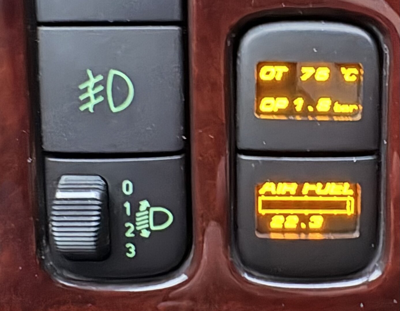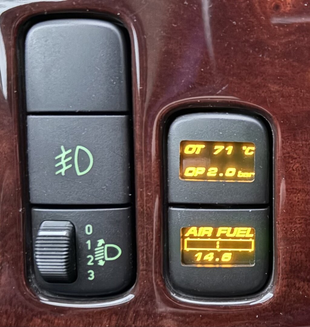 Heute sind die beiden SAABAASTIAN Zusatzanzeigen gekommen. Sehr schön ! Prima gemacht, mag ich sehr. Erstmal nur an den Strom angeschlossen, Sensoren und Verkabelung folgen. Die Breitband-Lambda muss Vor-Kat soviel ich weiß. Da bleibt nicht viel Platz … was denkt Ihr ? Gegenüber der ersten Regelsonde, von unten ?