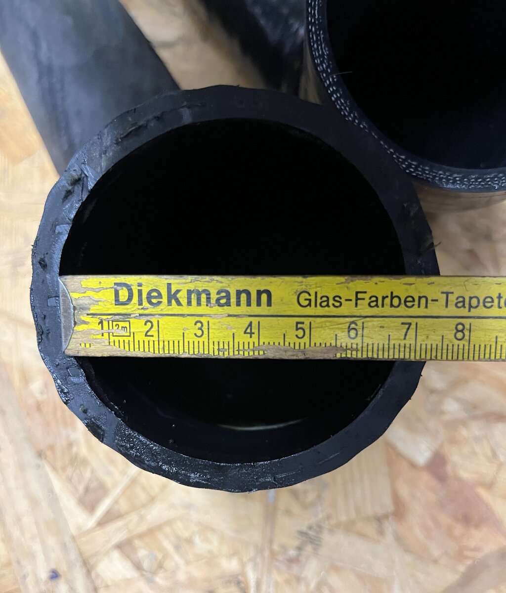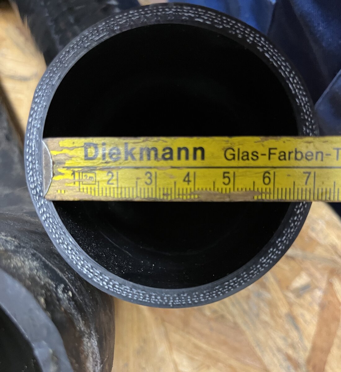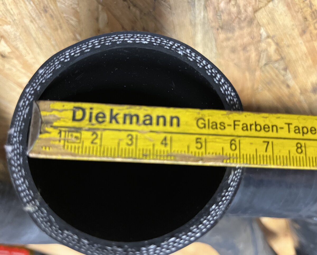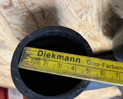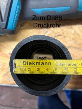 So, mein Sohn musste beim Schrauben Aushelfen. Ich konnte nur mal Schauen. Den neuen LLK machen wir im Frühjahr. Der DO 88 Druckschlauch für die heiße Seite Turbo - LLK DO88 fehlt eh noch. Der DO 88 hat unterschiedlich große Anschlüsse auf kalter wie heißer Seite, wie der originale LLK. Auf der heißen Seite 57 mm, auf der kalten Seite 63 mm. Der neue Druckschlauch ist fester, Durchmesser siehe Bild. Ich mag die tolle Optik. Ich mochte nicht die hohe Ansaugtemperatur (Open SID) im Sommer. Der Ladeluftschlauch kalte Seite ist natürlich auch unabgeschirmt am 1. Kat. Irgendwie Umwickeln mit Hitzeband, Alufolie ? Immerhin kommt der neue Schlauch irgendwie höher, weiter weg vom Kat. Die Undichtigkeit kommt aus den kleinen, echt teuren Ventilen des Unterdrucksystems. Das Ventil mal gereinigt - vielleicht reicht das ja aus.