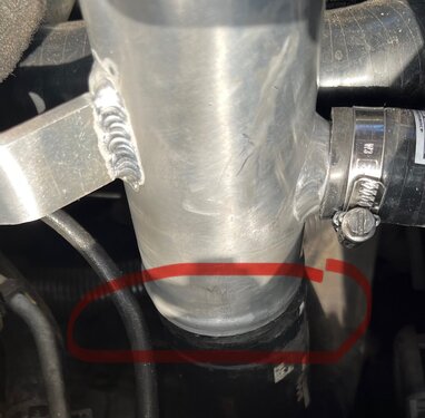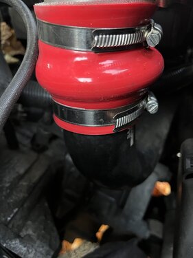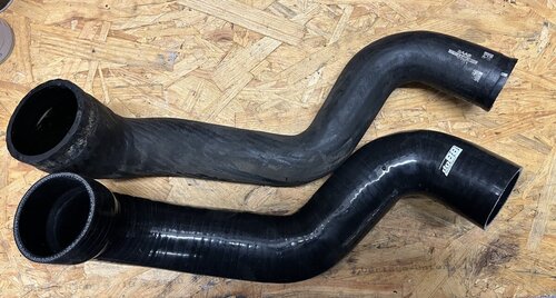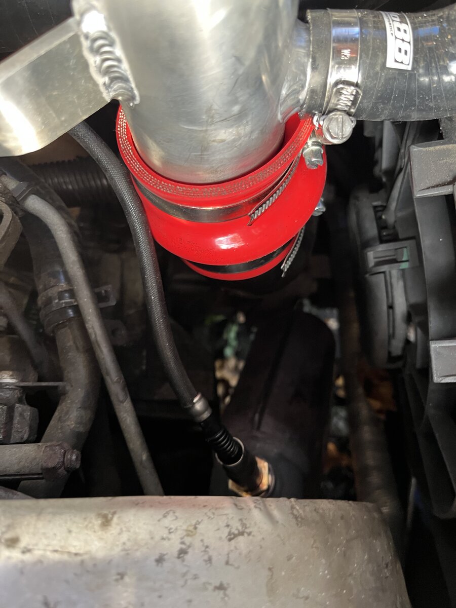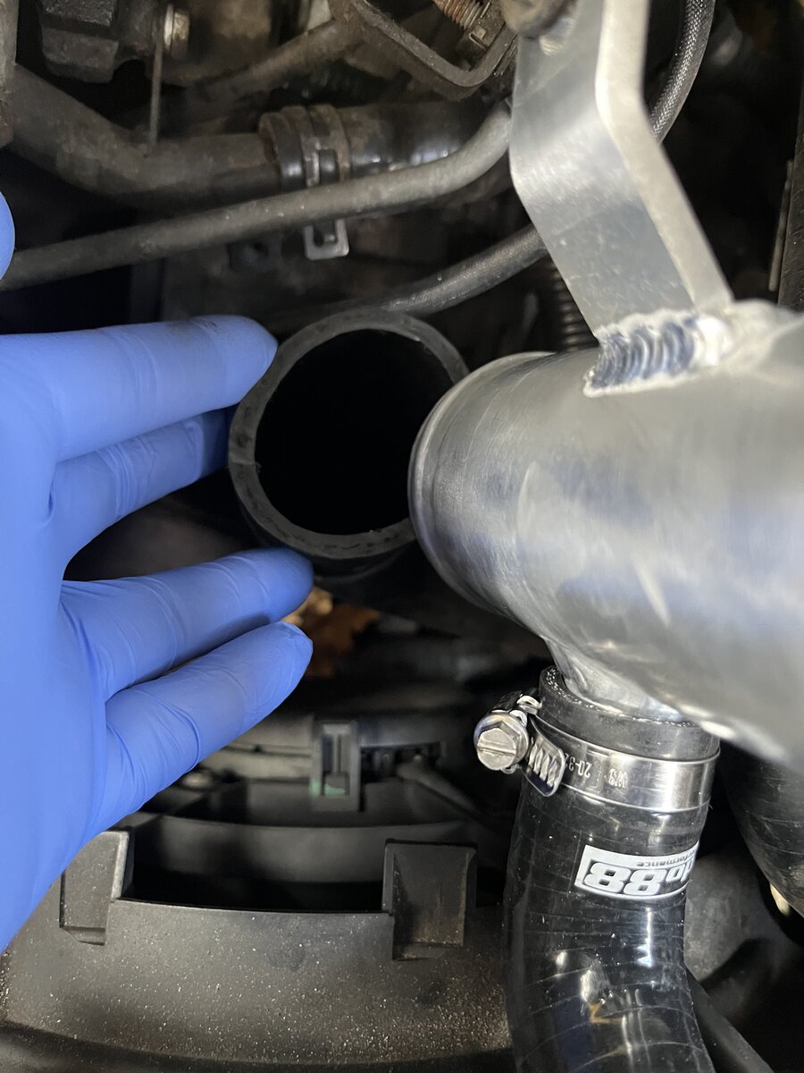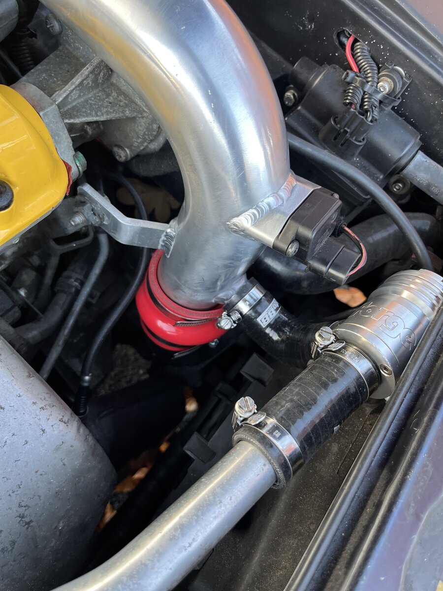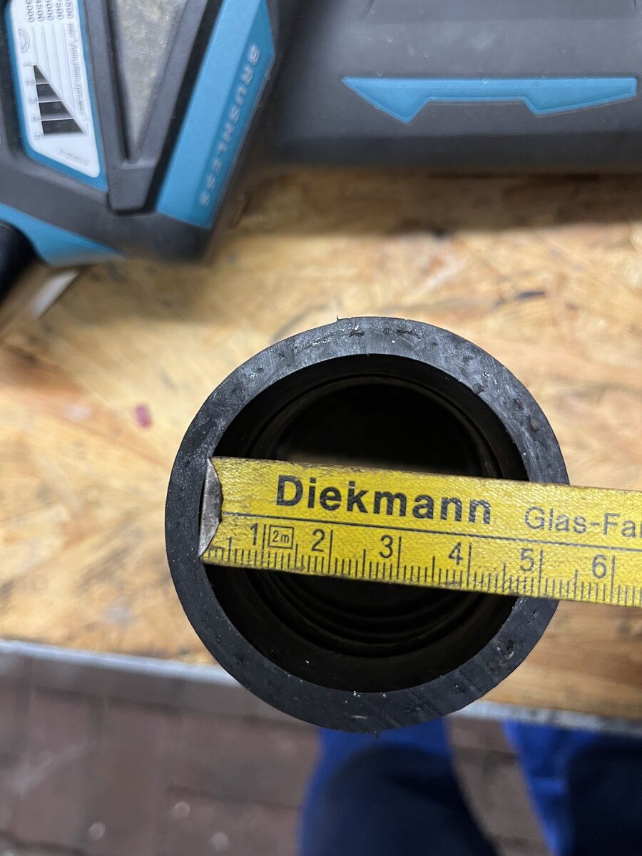 So, mein Sohn musste beim Schrauben Aushelfen. Ich konnte nur mal Schauen. Den neuen LLK machen wir im Frühjahr. Der DO 88 Druckschlauch für die heiße Seite Turbo - LLK DO88 fehlt eh noch. Der DO 88 hat unterschiedlich große Anschlüsse auf kalter wie heißer Seite, wie der originale LLK. Auf der heißen Seite 57 mm, auf der kalten Seite 63 mm. Der neue Druckschlauch ist fester, Durchmesser siehe Bild. Ich mag die tolle Optik. Ich mochte nicht die hohe Ansaugtemperatur (Open SID) im Sommer. Der Ladeluftschlauch kalte Seite ist natürlich auch unabgeschirmt am 1. Kat. Irgendwie Umwickeln mit Hitzeband, Alufolie ? Immerhin kommt der neue Schlauch irgendwie höher, weiter weg vom Kat. Die Undichtigkeit kommt aus den kleinen, echt teuren Ventilen des Unterdrucksystems. Das Ventil mal gereinigt - vielleicht reicht das ja aus.