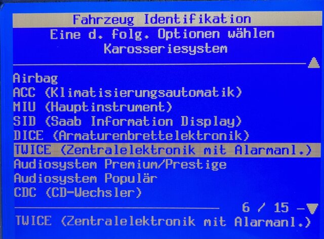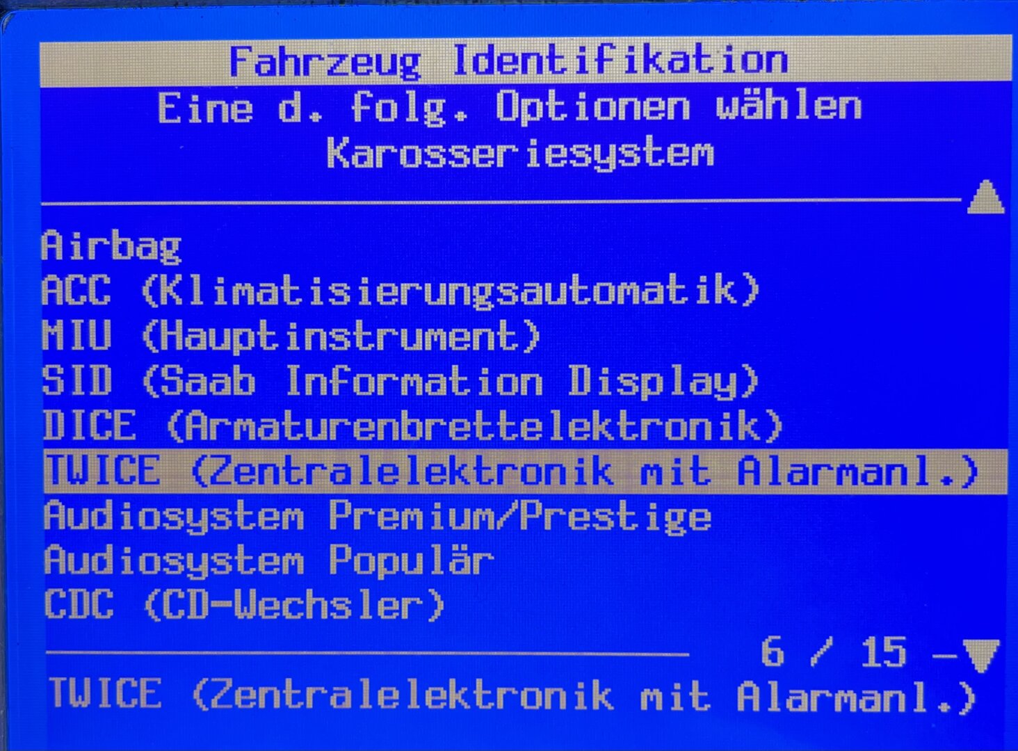Jetzt wieder angemeldet und unter dem Neu-Radio-Baujahr 2000 ab ins DICE. Meine eigentliche, originale VIN wieder eingegeben und programmiert. Zurück ins Grundmenü und mein Auto wieder „richtig“ als 2002er Saab 9-3 Cabrio angemeldet. Dann ins „Audiosystem populär“ und den Status von „geschieden“ auf „verheiratet“ geändert. Sofort fängt das Radio an zu spielen, nachdem es vorher stumm war. FERTIG. Ich hoffe, das war hilfreich. Frohen Nikolaus 2025 !!