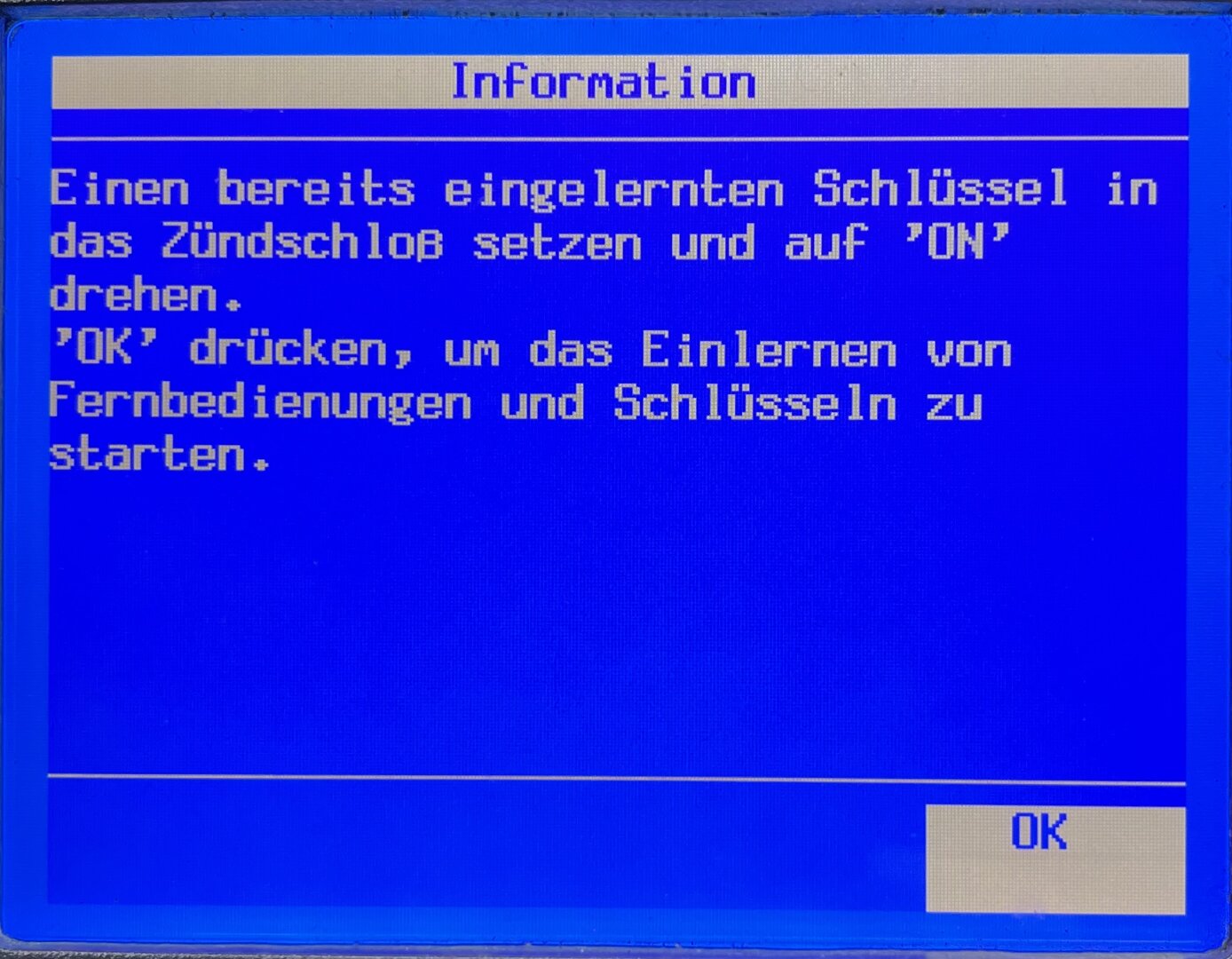 Ich habe leider meinen Zweitschlüssel versehentlich feucht gelagert - musste eine neue Elektronik anlernen. Weil ich es selber immer wieder vergesse … hier eine kleine Bildergeschichte zum Sonntag. Hoffentlich hilfreich. Die exakte Abgrenzung „Immobilisation“ (das Menü mit den 210 sec Sicherheitspause, Schlüssel wird angelernt etc. ) zum hier beschrieben Vorgehen ist mir dabei nicht ganz klar. Ich hatte beide Schlüssel über „Immobilisation“ angelernt, aber konnte dennoch den Motor erst wieder Starten, nachdem ich über den Schlüssel die Entriegelungstaste einige Male gedrückt hatte und das Fasten Seat Belts Zeichen dann angegangen war. Alles funktioniert jetzt, aber ganz verstanden habe ich das nicht.