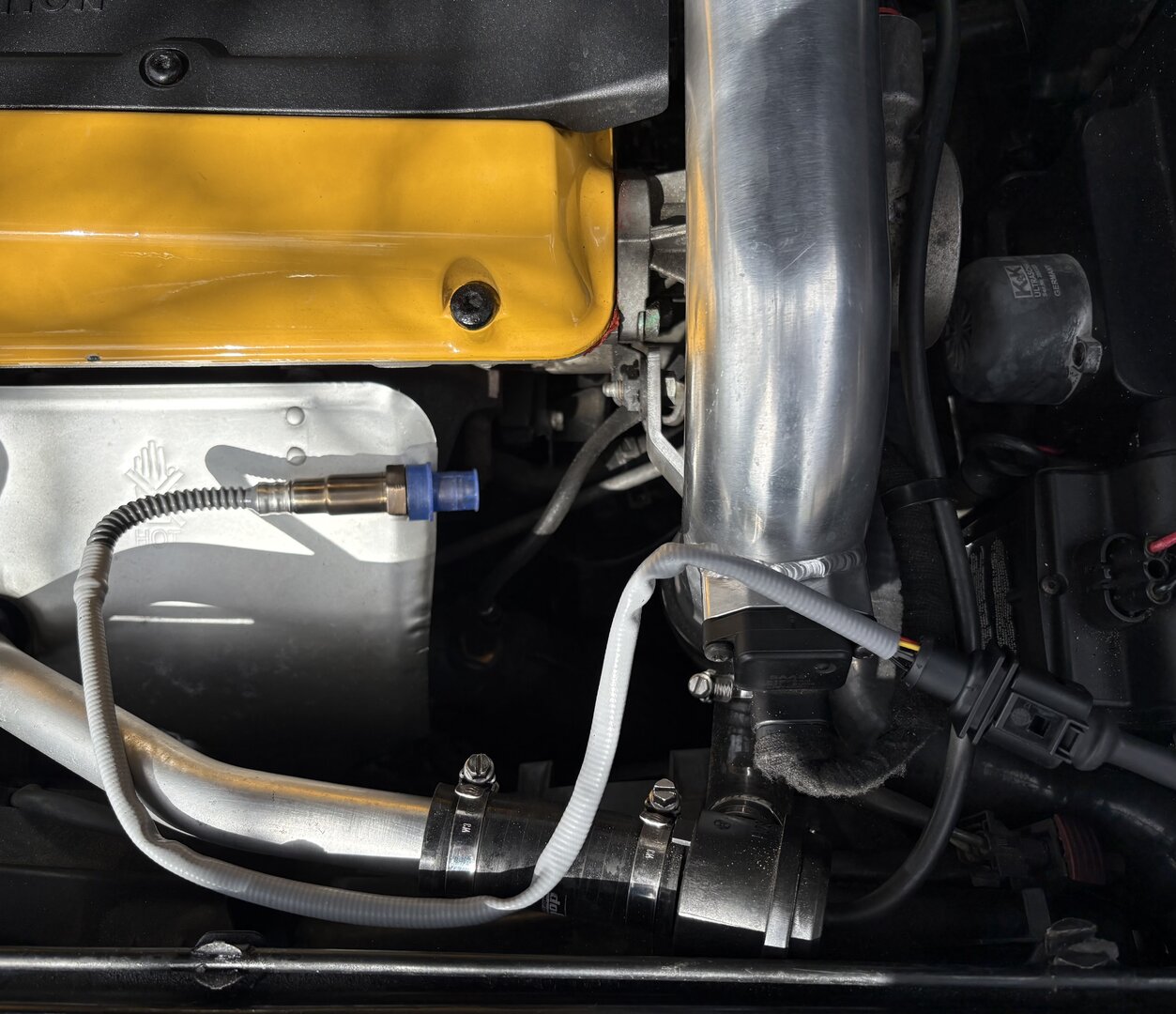 Heute schnelle Fahrt auf der BAB A1, wenig Verkehr, Sommerreifen, ich wollte zurück. Länger jenseits von 200 km/h, was ich dem Wagen nur sehr selten zumute. Die Öltemp ging nie über 96 Grad, auch nach Fahrt auf den Rastplatz nicht, im Leerlauf. Wagen heizt bei der Öltemp nicht weiter auf sondern kühlt sofort ab. Öldruck bei 95 Grad Kühlwasser, 96 Grad Öltemp im Leerlauf 1.1 bar mit dem 5W30. Das ist deutlich tiefer als bei unserem VW T6 (bei 115 Grad Öltemp gehen wir immer vom Gas, über 120 Grad ginge er problemlos, bekanntes Thema unter „Bulli-Fahrern).) oder meinem alten VW Golf 2 GTI (107 PS, Sauger, kein Ölkühler). Sehr zufrieden. Die Ansaugluft mit dem DO88 Paket ist deutlich tiefer auf der BAB als vorher. Im Stand eher höher, aber bei Fahrtwind sehr gute Kühlung. Vom Wasser/Getriebeölkühler merke ich keinen Unterschied.