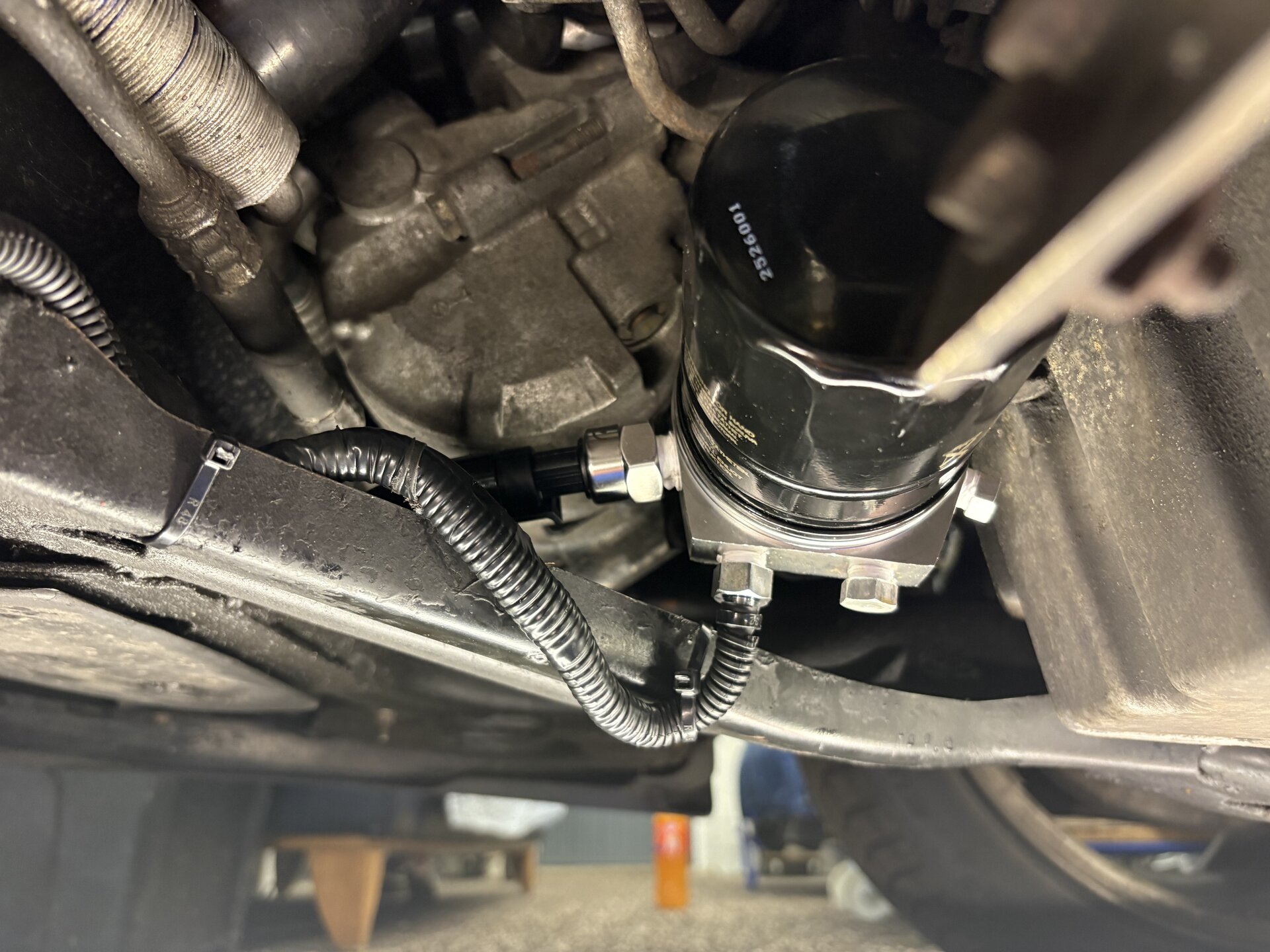 253 tsd, Ölwechsel. Dieses Mal war ich spät dran, 12 tkm war es drin und ziemlich dunkel. Ich wollte eigentlich auf die „Saabastian“ OLED Anzeigen warten und dann gleich die Geber für Öltemp/Öldruck montieren. Stattdessen das Ölsieb nach langer Zeit erstmals wieder angeschaut - durch das Loch der Ölschraube. Keine dunklen Ablagerungen, ganz anders als bei Kauf vor 75 tkm. Das spricht für die kurzen Intervalle von 8-10 tkm und die LM Motorspülung beim Ölwechsel. Die rote Dirko Dichtmasse am Sieb ist mir ein Rätsel - ich bin damit immer sehr sparsam umgegangen (Ventildeckel). Nun gut. Mit dem Kabelbinder und Druckluft rausgefischt, zuvor Bremsenreiniger für gute Sicht.