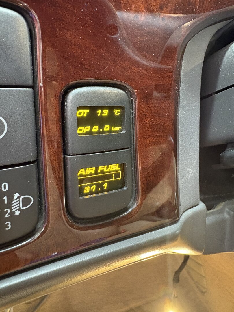Heute sind die beiden SAABAASTIAN Zusatzanzeigen gekommen. Sehr schön ! Prima gemacht, mag ich sehr. Erstmal nur an den Strom angeschlossen, Sensoren und Verkabelung folgen. Die Breitband-Lambda muss Vor-Kat soviel ich weiß. Da bleibt nicht viel Platz … was denkt Ihr ? Gegenüber der ersten Regelsonde, von unten ?