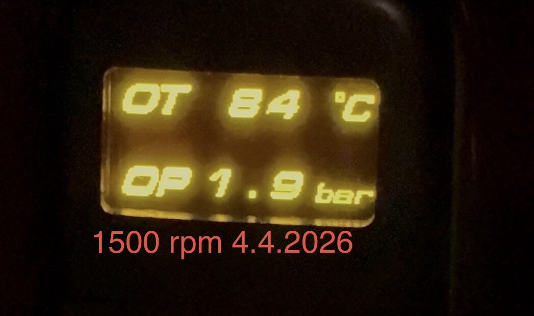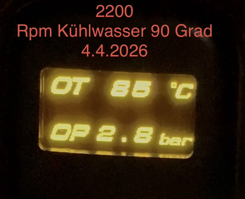 Guter Einwand. Ändere ich, muss ja eh noch an den Auspuff und noch einmal schauen. Meine Messwerte von der ersten Probefahrt (Kühlwasser OpenSID, Getriebeöl Tech2, Öltemp und Öldruck Saabastian/ZadaTech). Laufleistung 254 tkm. Öl ist 1000 km alt, Rowe 5W30, ohne Ceratec. Ölsieb ist sauber (Endoskopie letzter Wechsel). Soweit ich weiß noch die ersten Pleuellager / Ölpumpe. 850 rpm : 90 Grad/ 72 Grad / 84 Grad / 1.2 bar 1500 rpm : 90 Grad / 73 Grad / 84 Grad / 1,9 bar 2200 rpm : 91 Grad / 73 Grad / 84 Grad / 2.8 bar