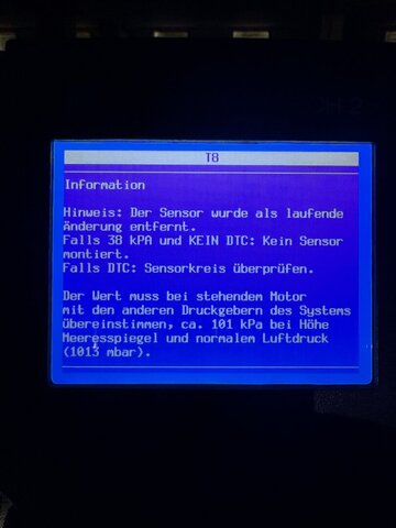 Hallo in die Gruppe, der Sportkombi hat ein Problem! Er ist ein 1,8 Turbo aus 12.2005 - Software ist 2006. Er hat eine neue Kraftstoff Pumpe bekommen alles ist soweit gut ca. ein Monat später startet er morgens erst nach dem zweiten oder dritten Mal. Danach springt er dann denn Restlichen Tag ganz normal an. Das ist der Eintragen aus dem Tech2, da ich dort nach den Drucksensoren geschaut habe um zu schauen ob es da Abweichungen untereinander gibt. Dabei ist mir der der Drucksensor aufgefallen. Der soll am Tank auf der Kraftstoff Pumpe sein Dort bin ich mir sicher dass es dort keinen gibt!! Auch keinen leeren Stecker, am Tank ist soweit alles okay. Der Wert sollte im Leerlauf ca. 101 kpa haben wie die anderen beiden auch!! Er zeigt aber 38 kpa an, mit dem Hinweis im Tech2 Ich finde aber keinen Hinweis darauf, weder im Tech2 noch im WIS, im EPC steht auch kein Hinweis auf diesen Drucksensor! Man Sieht ihn aber im WIS Druckgeber EVAP ( 585 ) wäre der Kandidat Vielen Dank Ulf