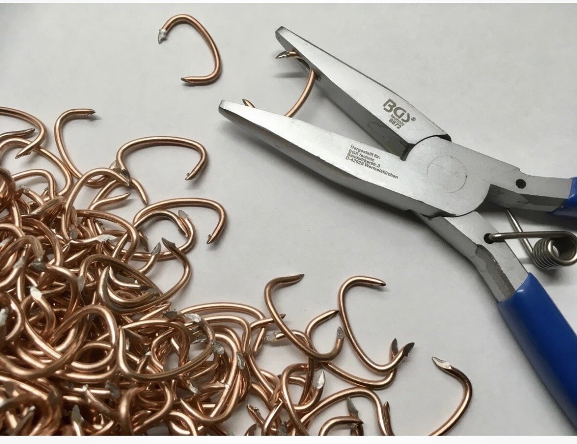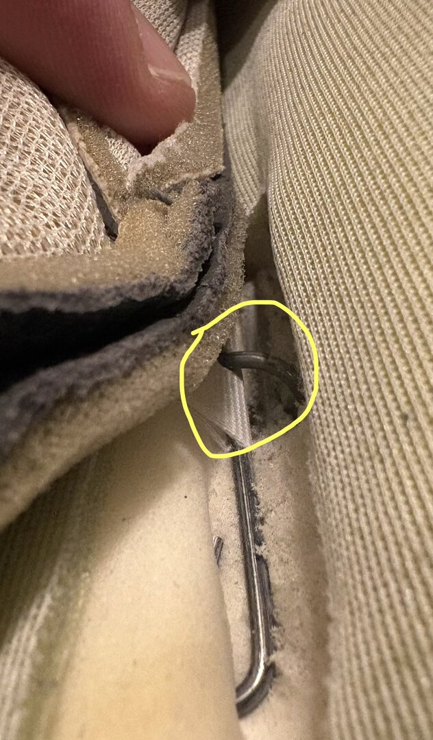Sitzteil Beifahrer Seite von unten Das sind die klemm Schienen, die am Sitzgestell den Sitz eigentlich halten! Das in Eingekreisten ist eine Sattler Krampe in rund. An der Seite gibt’s auch noch eine! Wichtig die müssen nach der Demontage wieder da sitzen, sonst sieht es nicht mehr gut aus Pro Seite sind es glaube ich Fünf Stück. Mit so einer Zange werden diese Krampen wieder an Ihren Platz gesetzt. Die hier sind aber hinterher dreieckig!! Und nicht rund! Viel Spaß damit und guten Jahreswechsel Ulf- Koppelstange hinten wechseln