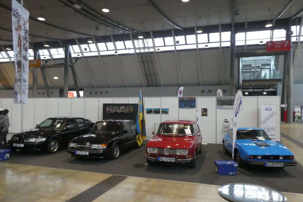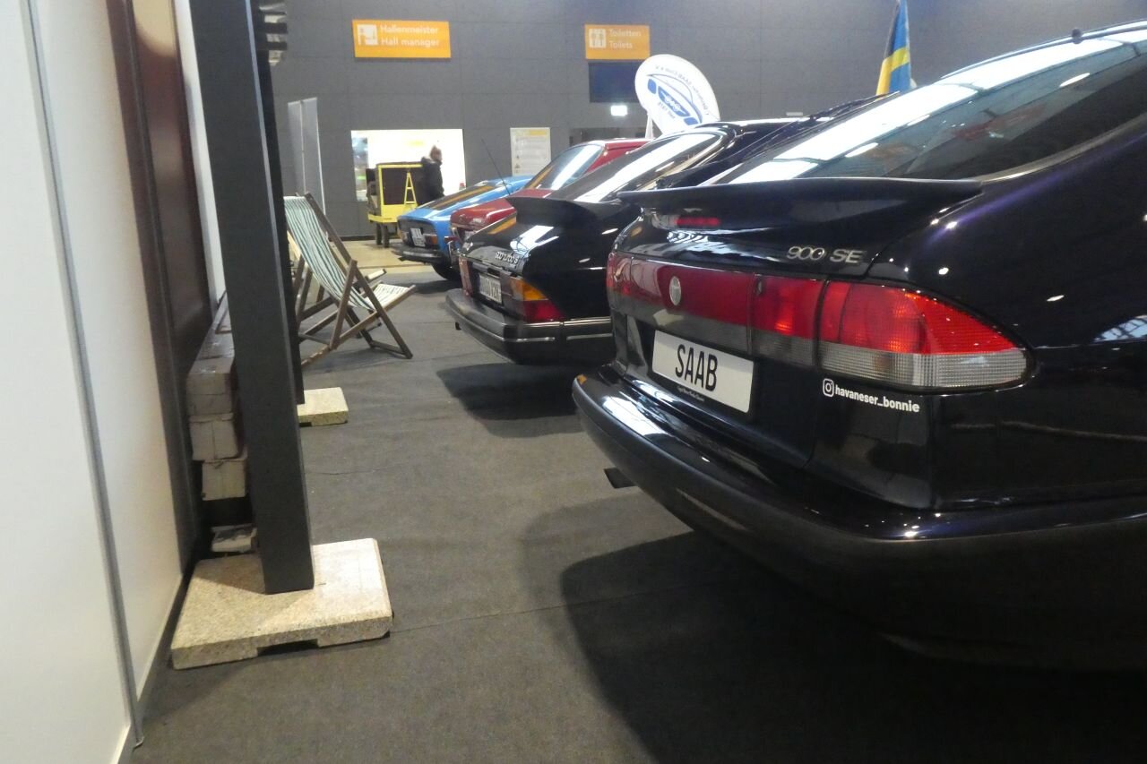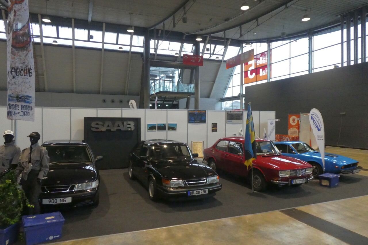 So, die Aufbaumannschaft war fleißig (Danke dafür ). Teppich ist verlegt. Die Autos sind angeliefert und trockengerieben. Deko ist verteilt. Kann also morgen losgehen. Dieses Jahr stehen eine Sonett, ein 99 und zwei Generationen 900 auf dem Stand. Denn auch die zweite Generation 900 ist im H-Alter. (Allen Neuwagen auf der Retro zum Trotz halten wir sie immer noch für eine Oldtimermesse und haben, wie bislang, das Mindestalter der Ausstellungsfahrzeuge auf 30 Jahre gesetzt.)