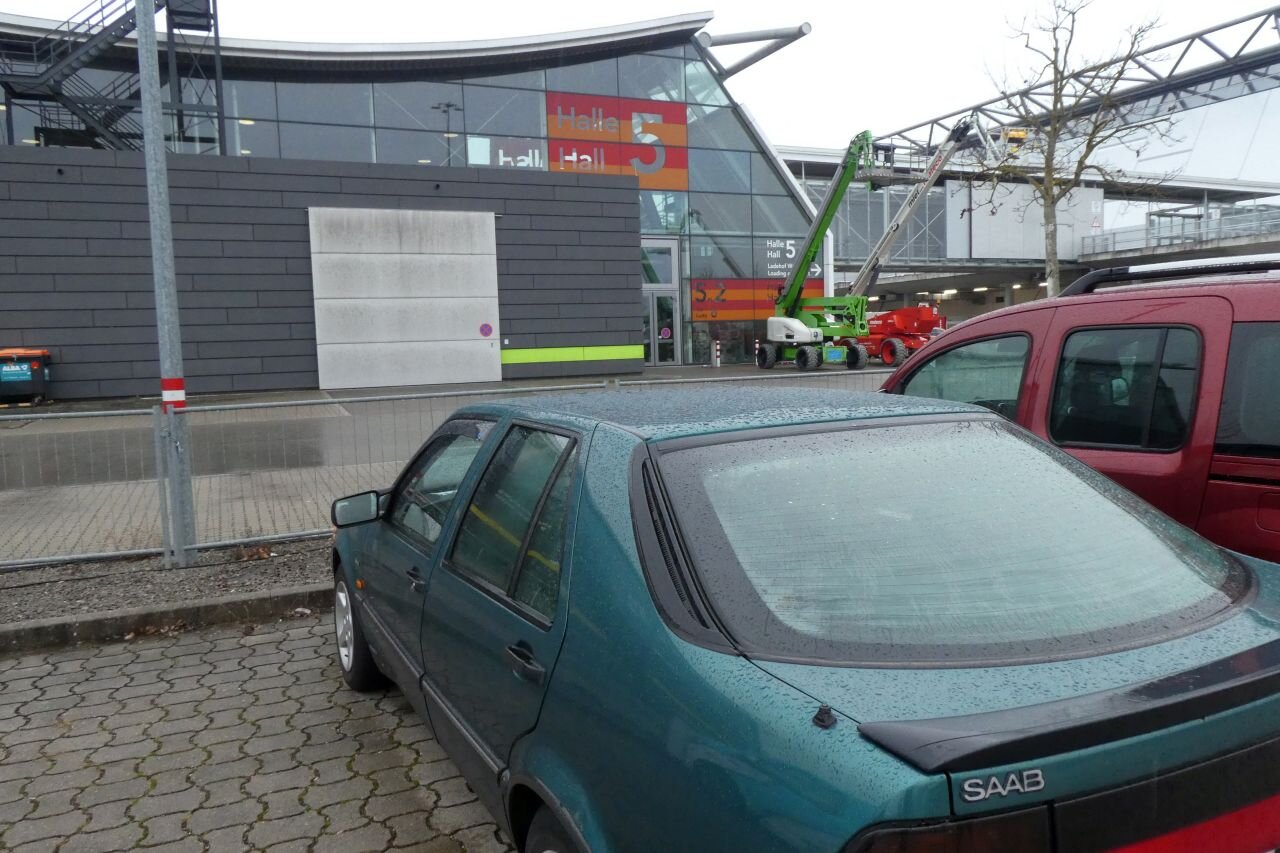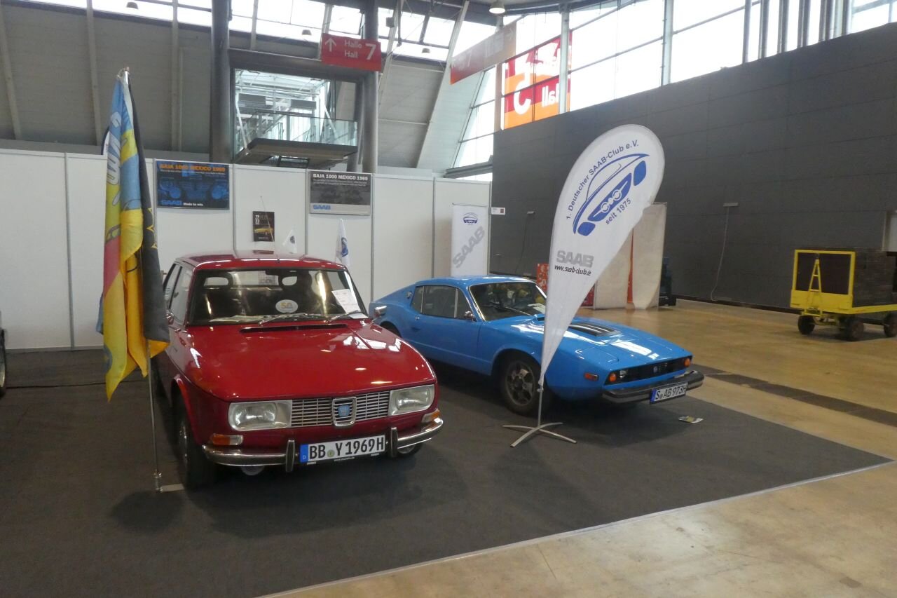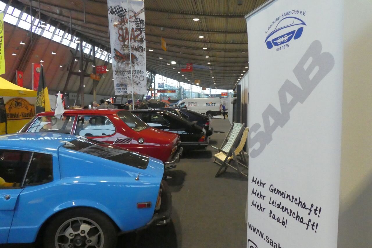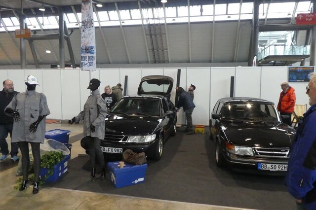 So, die Aufbaumannschaft war fleißig (Danke dafür ). Teppich ist verlegt. Die Autos sind angeliefert und trockengerieben. Deko ist verteilt. Kann also morgen losgehen. Dieses Jahr stehen eine Sonett, ein 99 und zwei Generationen 900 auf dem Stand. Denn auch die zweite Generation 900 ist im H-Alter. (Allen Neuwagen auf der Retro zum Trotz halten wir sie immer noch für eine Oldtimermesse und haben, wie bislang, das Mindestalter der Ausstellungsfahrzeuge auf 30 Jahre gesetzt.)