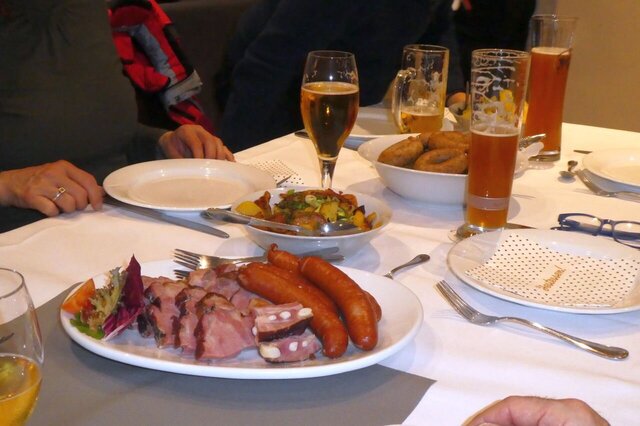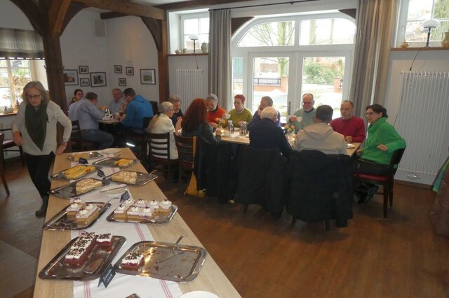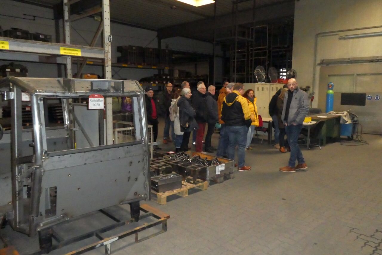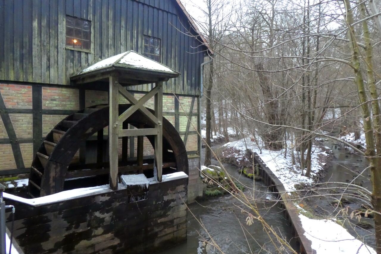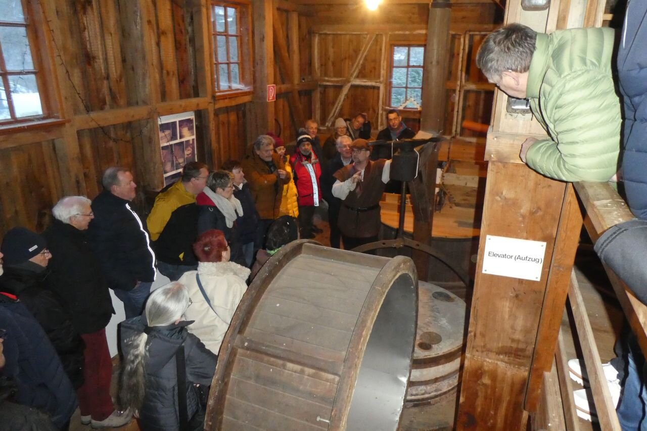 Pünktlich zum Beginn der Olympiade trafen Teilnehmer aus aller Herren Länder (also HH, NI, HB, NRW, HE, BY, BW, …) in dem verschneiten Wintersportort Walsrode ein. Die Disziplinen waren wieder „Frühstücksbuffett“, „Kaffee&Kuchen satt“ und „grünes Gemüse mit Sättigungsbeilage“. Zur Revitalisierung zwischen den einzelnen Gängen wurden einige Zwischenhalte angesteuert. Die Fa. DIETEG , in der uns der Produktionsleiter erklärte wie Kabinen für Stapler oder Landmaschinen gefertigt werden. Von der CAD-Konstruktion, über Schneiden, Biegen, Schweißen von ebenen Blechen oder graden Rohren, hin zur Pulverbeschichtung bis zur Endmontage. Alles im eigenen Haus. In der Heide-Wachs Kerzenfabrik wurde nicht nur gezeigt wie Kerzen in Form gegossen oder gezogen werden, auch die Tätigkeiten von Kerzenschnitzern wurde vorgeführt. Und schließlich die Cordinger Mühle . Eine Museumsmühle, in der uns Knecht Johann (nach eigenem Bekunden geboren 1720, hat sich aber ganz gut gehalten …) kurzweilig ins späte 18. Jahrhundert führte. Das Landleben damals war eher nicht idyllisch … Er erklärte, unter anderem, warum im "Differenzial" der Mühle ein Kegelrad aus Gußeisen, das andere ander aus Holzzähnen besteht. Außerdem lernten wir hier den Kleiekotzer und den Mühlenhahn kennen. Auf eine Siegerehrung wurde wegen Gleichstand verzichtet, aber die Ehrenmedaille gebührt Hutzelwicht. Irgendwie hat er es mal wieder einmal hinbekommen den Samstag mit einem abwechslungsreichen und interessanten Programm zu füllen. Danke Ulli! In diesem Sinne, Mahlzeit
