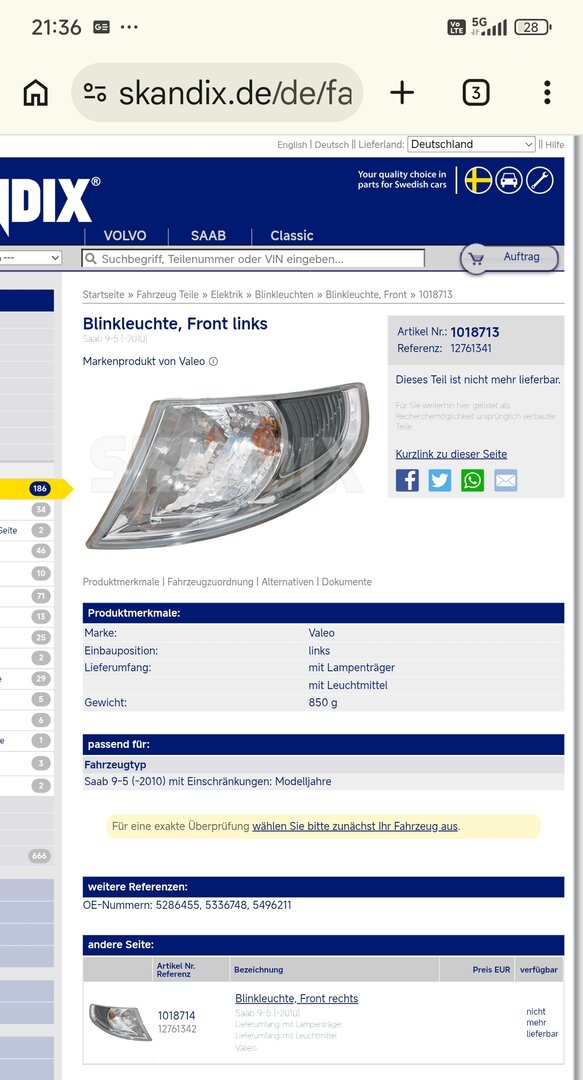 So ich kann mir die Frage selber beantworten. Gerade werden "in der 9-5 schon besichtigt?" 2 Saab's vorgestellt. Ein VFL und ein FL. Bei den Frontaufnahmen sieht man sehr gut, dass die FL Blinker in Richtung Scheinwerfer eher gebogen sind. Passt also nicht. Zudem hat der VFL Blinker eine Nase mehr, die dem FL Blinker fehlt. Daher wohl auch ne andere Aufnahme in der Karosse. Habe mir jetzt einen Blinker in NL bestellt. Das mit Schwedenteile ist mir bissel zu ominös.