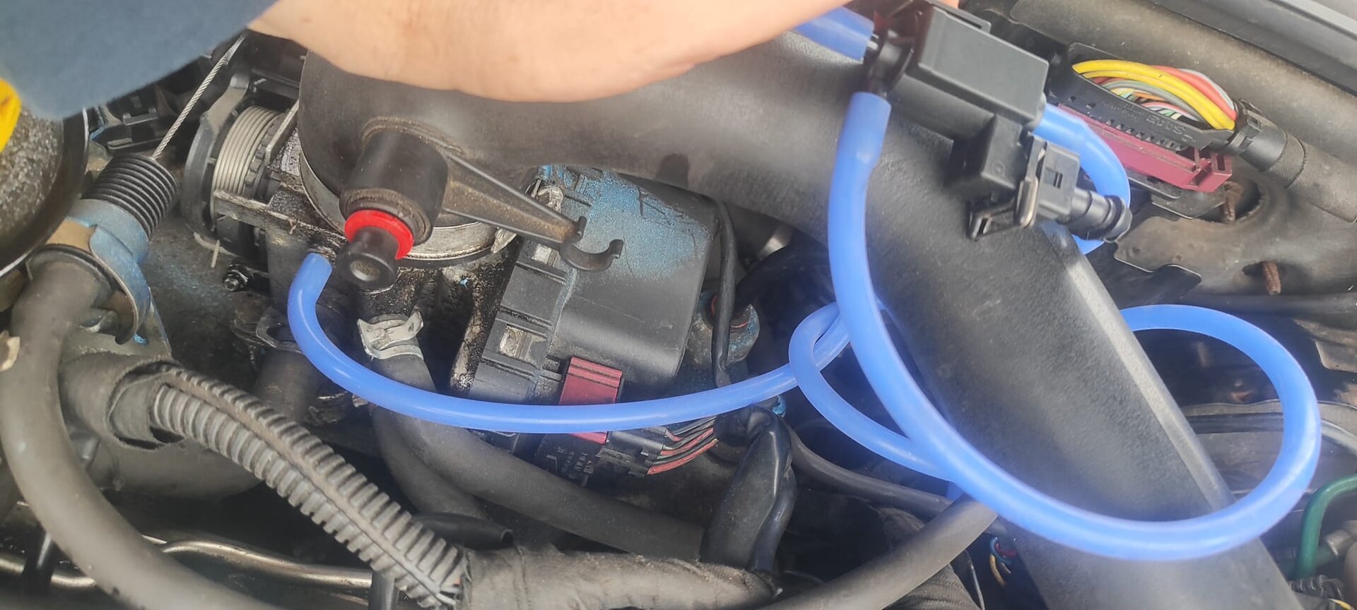 Na ich meine das rot eingekreiste. Ich hab das natürlich so an diesem F Nippel oben dran. An der DK ist ja auch kein freier Anschluss mehr. Von dort aus geht es ja in Richtung Heizung, Ist die Frage ob das darunter liegende rote Plastik Ventil ...oder dieses Magnetventil, welches hinter dem roten Ventil liegt, P1110 werfen können, so sie defekt sind?