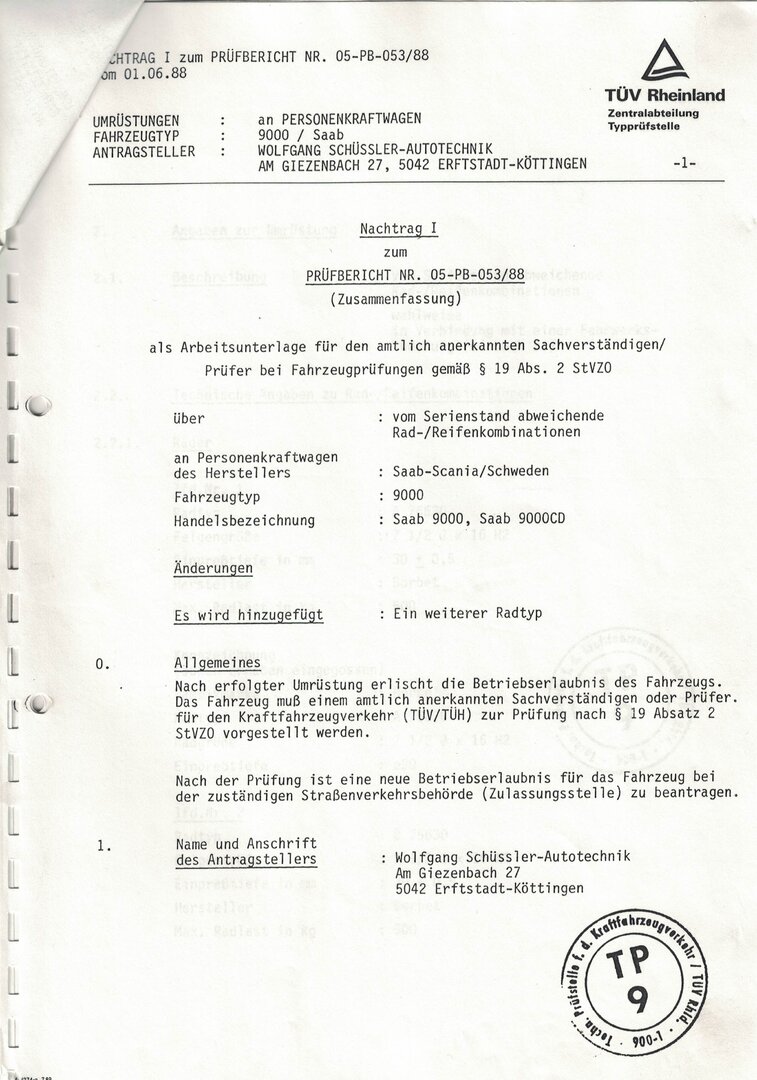 ...das Gutachten für die BORBET Typ A habe ich gefunden - ist allerdings für den 9000, weitere Felgen, BORBET Typ B und BBS RS, sind mit im Gutachten enthalten (das Gutachten kann gerne verschoben werden) ...Schlüssel für die Felgendeckel habe ich eventuell auch noch - checke ich nächste Woche! Schüssler Gutachten.pdf