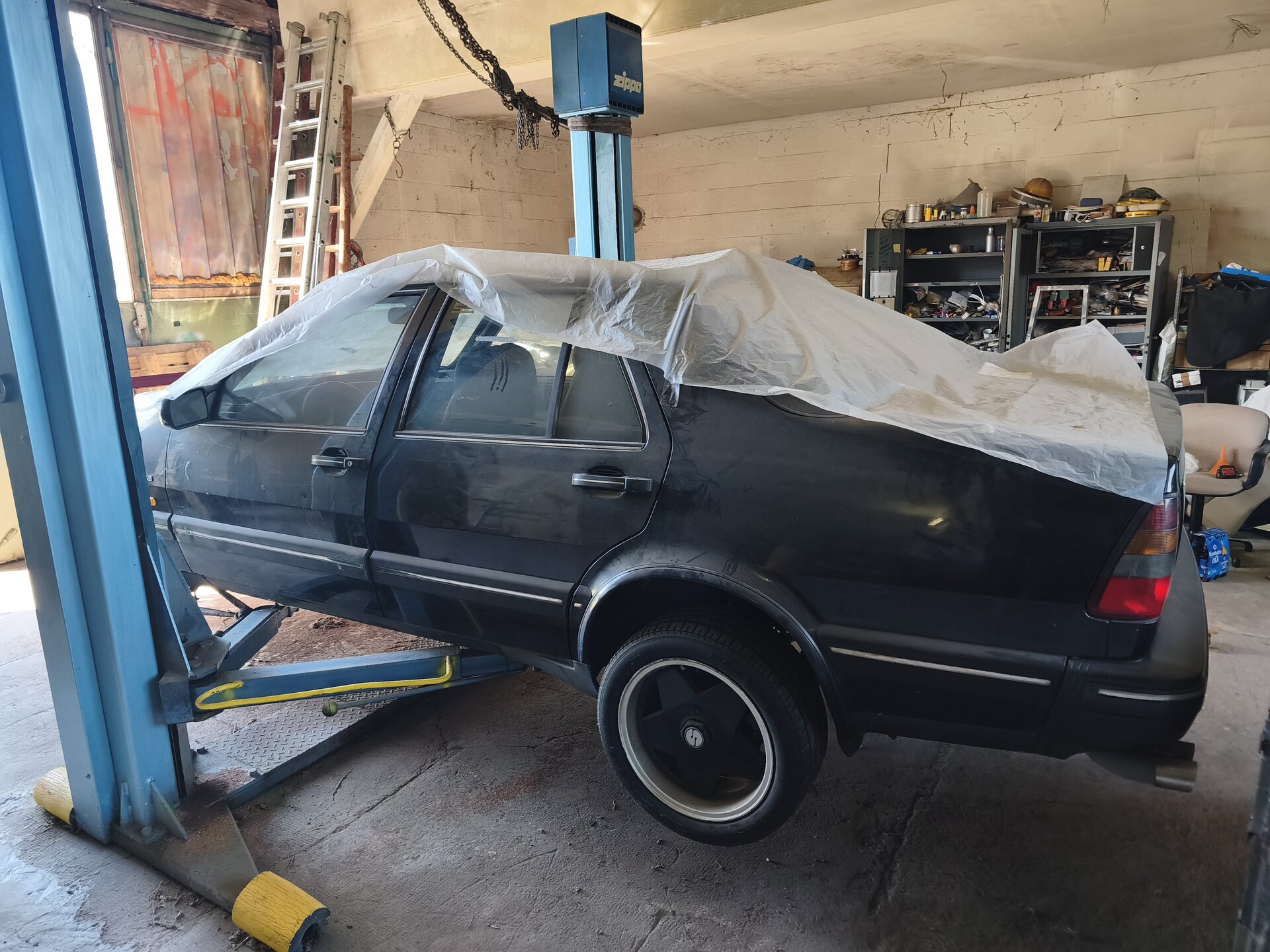 In der Nähe von Bremervörde steht in einer Scheune mit Hebebühne ein 9000CD 2.0 Turbo Automatik in schwarz. Der Wagen ist ein abgebrochenes Projekt, dass nun inklusive vieler Ersatzteile aufgrund einer Räumung angeboten wird. Der ursprüngliche Besitzer und Restaurator ist leider verstorben. Der neue Besitzer sucht noch nach den Papieren. Der CD ist zu etwa 90% fertig montiert und an den neuralgischen Stellen bereits saniert, ich konnte gestern einige Photos machen. Der Motor und das Automatikgetriebe sollen bereits überholt worden sein, der Unterboden und die Radhäuser machen ebenfalls einen frischen Eindruck. Der Innenraum sieht sehr gut aus, das Sport-Lederlenkrad und die Holzausstattung plus Beckerradio und die Ledersitze sind im Jahreswagenzustand. Der neue Inhaber der Location ruft VB1.500€ für den CD inklusive aller noch vorhandenen Saab-Ersatzteile auf. Infos und Kontakt gerne über mich.