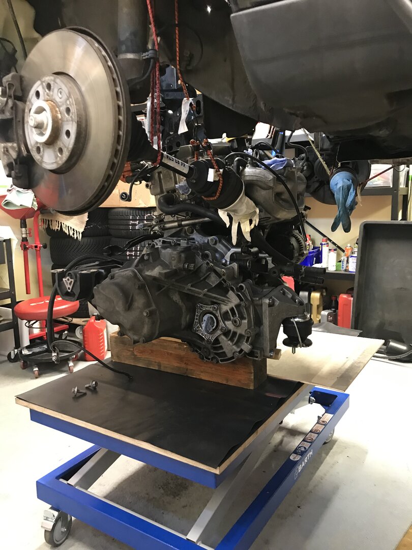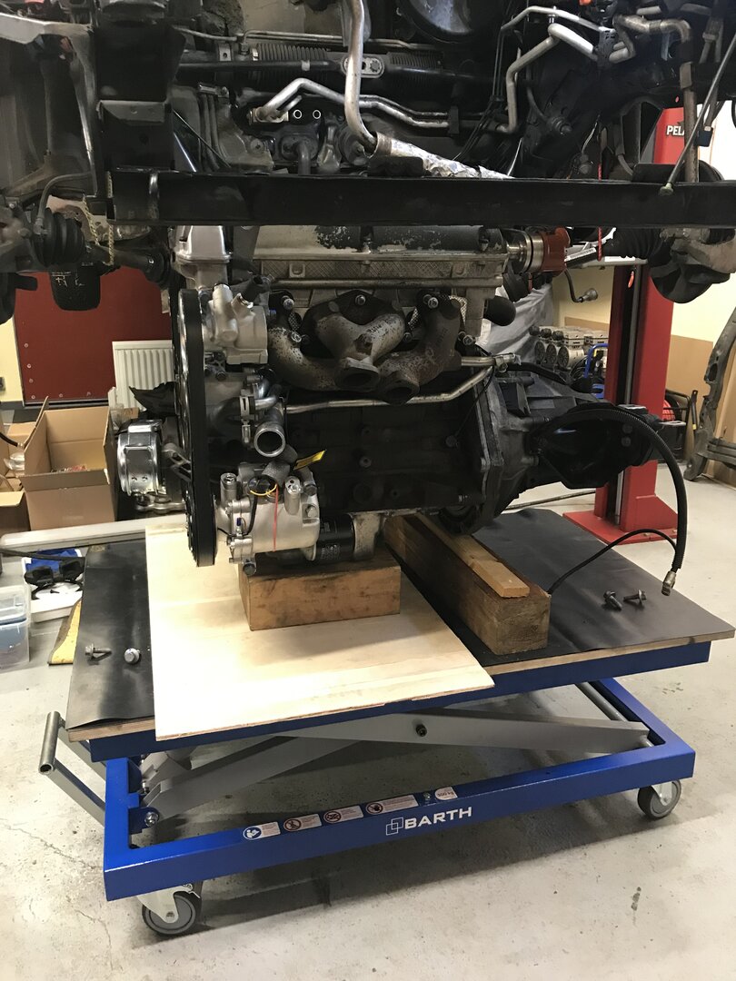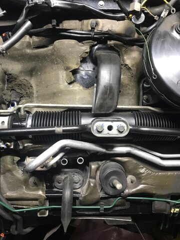 Neuer Balg ist drin. Habe einen von TRW genommen. Als Kit mit Ohrenschelle. Lenkgetriebe nicht ausgebaut. Nur soweit gelöst das ich es beifahrerseitig nach vorne schwenken konnte um den Balg durch das Radhaus aufschieben konnte. Motor habe ich kurzerhand wieder ausgebaut. Der Hubtisch dafür hat sich jetzt schon bezahlt gemacht. Hydraulik Leitungen abgeschraubt und Stopfen rein. Spurstangen abbauen. Schelle links abbauen, rechts lockern. Zum Aufschieben des neuen Balg den Gummiring abnehmen. Und fertig.