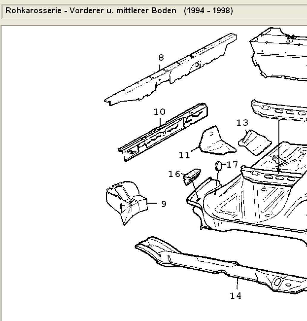 Saab 900 II MJ97 B234i Beim Warten auf die neue Staubschutzmanschette für das Lenkgetriebe angefangen das Radhaus vorne rechts zu sanieren. Das war mit Schaum, kein normaler Bauschaum, gefüllt wo ich erst dachte das wäre die Dämmmatte innen. Aber denkste. Ist blöd zum Schweißen, raus damit. Wenn man genau hinsieht ist da noch ein senkrechtes Blech was wohl verhindert das das Radhausblech nach innen gedrückt wird. Links von dem Blech war dieses Plastikteil eingeklippst. Die GM Nummer ist im EPC nicht verzeichnet und das Stützblech auch nicht zu sehen. Wisst ihr genaueres? Ich denke das man bei der Fertigung durch den Stopfen 16 den Schaum eingespritzt hat.