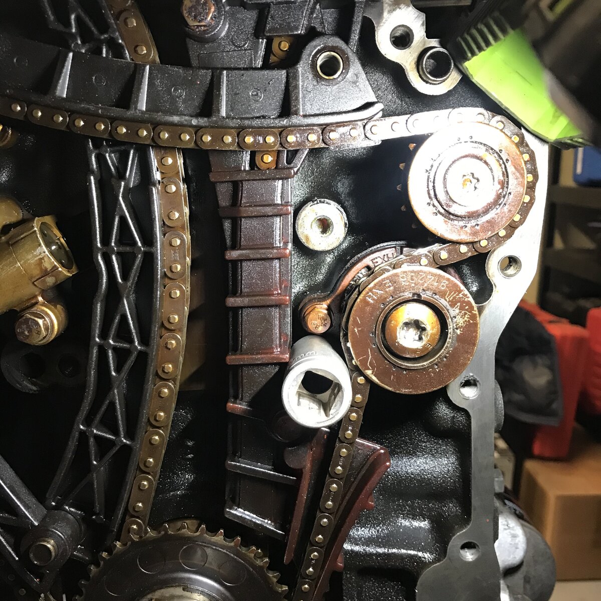 Motorständer ist angekommen. Soweit erstmal alles abgebaut und gereinigt. Kettenspanner auf 17mm ausgefahren. Neuer Kettensatz ist da für Nockenwelle und Ausgleichswelle. Stirndeckel ist runter. Schwungscheibe ist fixiert. Aber: Ich bekomme die Schrauben der Ausgleichswellenzahnräder und der Umlenkrolle einfach nicht gelöst. Nach WIS sind die Anzugmomente ja nicht so hoch und es sollte doch gehen. Habe Angst mir die Torxschrauben zu vernudeln. Wie habt ihr das gelöst?