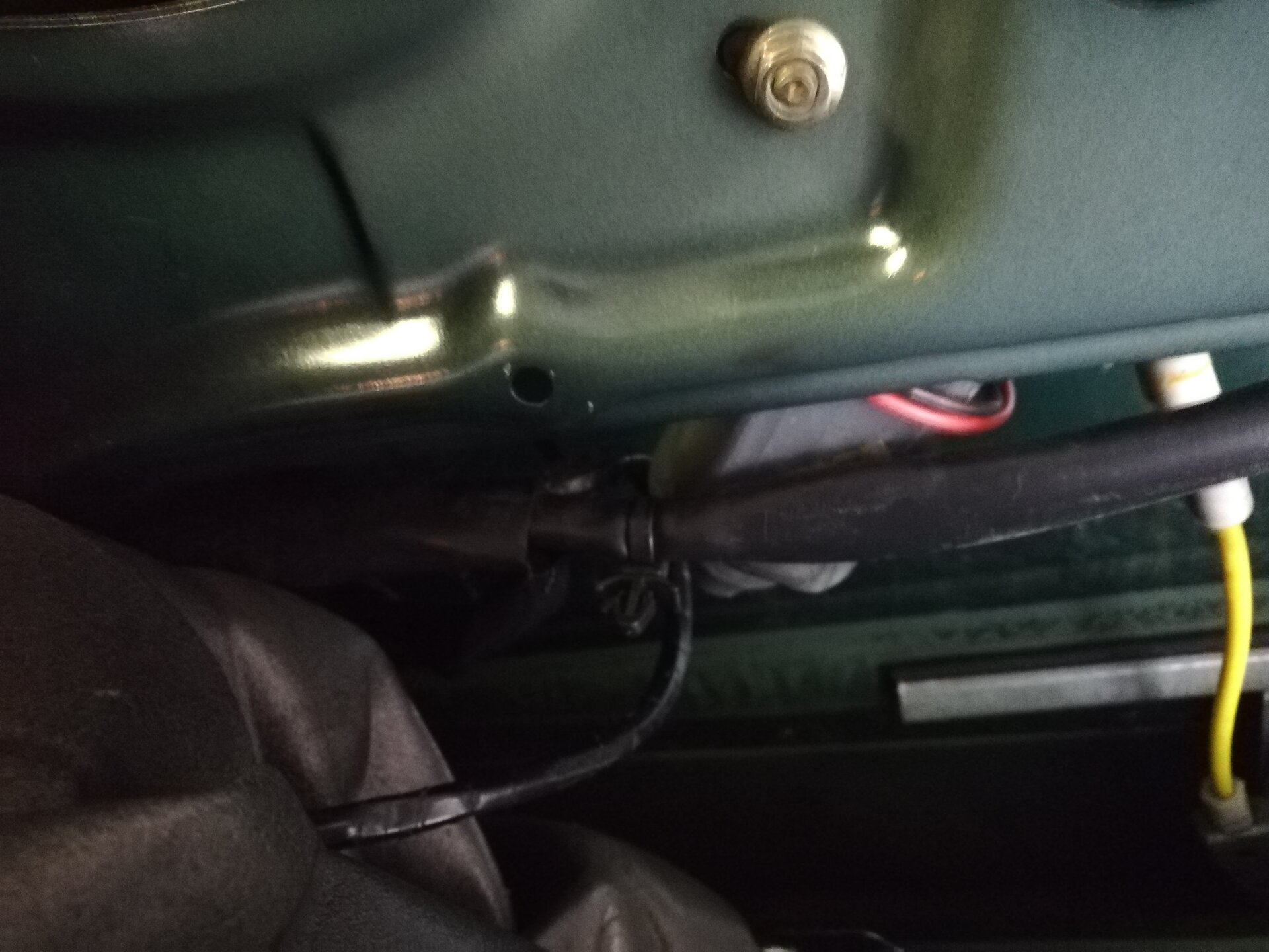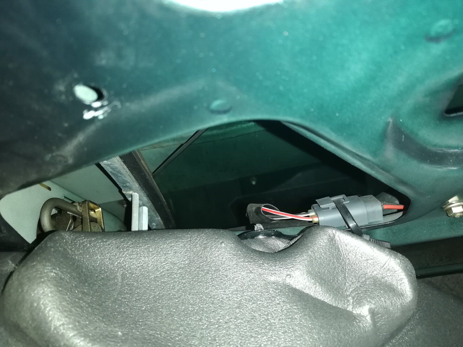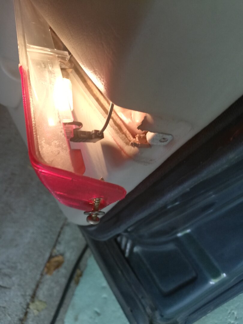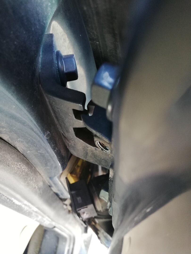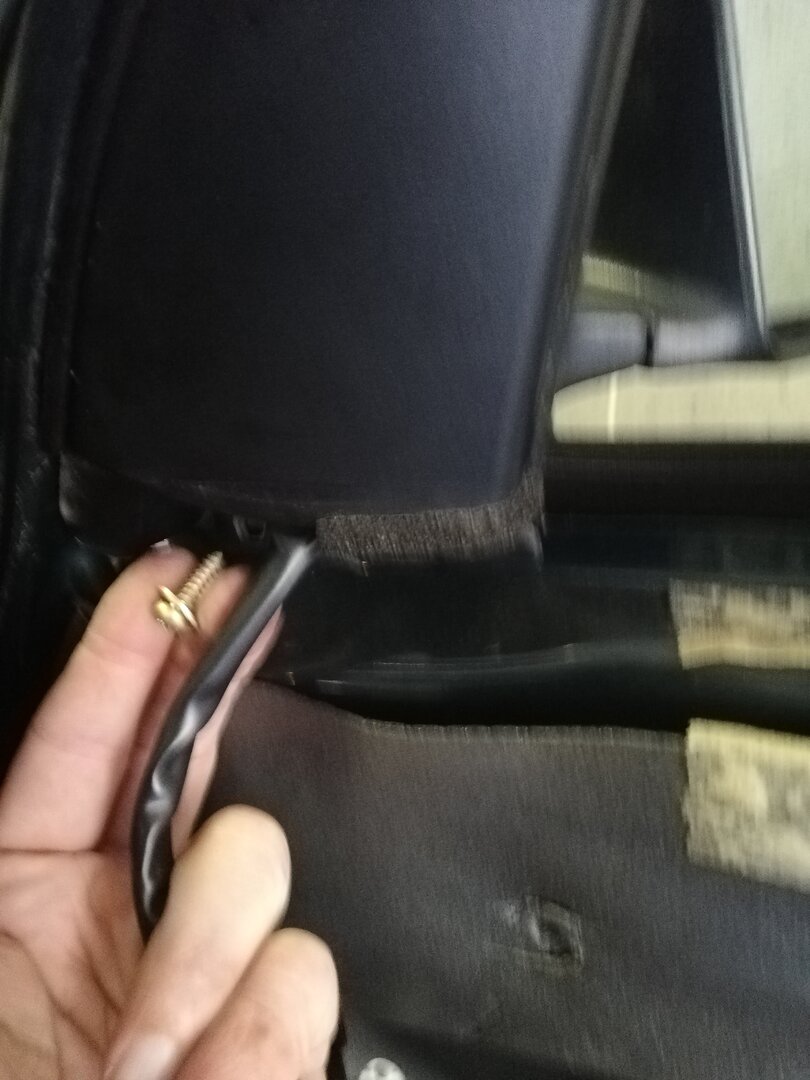 Schritt 4 Ausbau der Türe Dazu muss man die Türe komplett öffnen. Wer wie ich in einer schmalen Garage schraubt, muss jetzt einen Blick aufs Wetter werfen ;-) Tatsächlich geht das aber ziemlich einfach. Wenn man die Türe voll öffnet, kann man den Tür-Kabelbaum trennen. Der Stecker ist mit einer einfachen Kunststoff-Klammer gesichert (das rote Ding): Wenn die Klammer heraus ist, kann man den Stecker abziehen. Dabei aufpassen, dass sich das Gegenstück nicht in die A-Säule verkrümelt. Ist zwar eigentlich größer als das Loch, aber mit etwas Pech und Verkanten kann man es evtl. versehentlich versenken. Jetzt kann man noch den Türfänger lösen, der direkt drunter sitzt. Ich habe dazu einfach die Verschraubung an der A-Säule gelöst, denn die Ersatz-Türe kam glücklicherweise mit diesem Teil Jetzt muss nur noch diese Sicherungs-Schraube raus: Hier im Detail: Die Tür ist nun völlig frei. So weit öffnen, dass der "Kamm" richtig steht, und man eine Lücke hat: Jetzt einfach nach oben ziehen. Dazu kann ganz schön Kraft vonnöten sein. Das gibt dann gerne ruckartig nach, und man hat die Tür in der Hand (ich würde sagen, wiegt so um die 20 Kg) Nun kann man noch den Kabelbaum entnehmen, und bei Bedarf Scharniere etc demontieren und an die Ersatztüre schrauben: Fertig :)