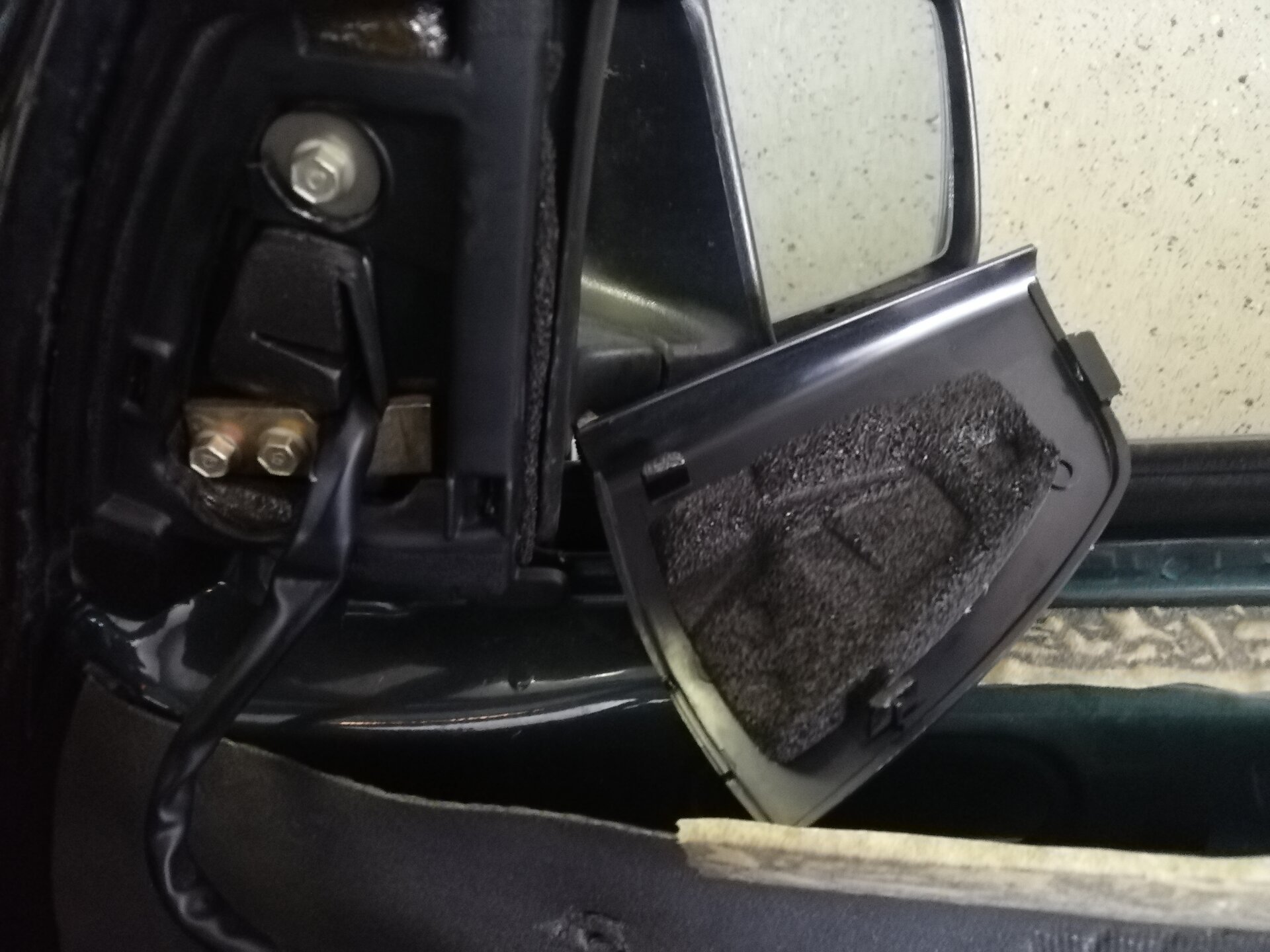 Schritt 2 - Demontage Isolierung Wichtig: diese nicht einfach abreißen / Risse vermeiden. Ist dieser Kunststoff beschädigt, dringt Feuchtigkeit ins Auto ein. Hier löse ich zuerst den Anschluß (Verstellung, Heizung) des Außenspiegels - die Pins bekommt man gut ( = unbeschädigt!) mit einer Spitzzange zusammengedrückt und dann aus dem Blech gezogen: Detailfoto Stecker: Die Innenverkleidung des Spiegels ist mit einer Schraube befestigt: Oben ist der Deckel geclipst: Schrauben ab, und schon ist der Spiegel demontiert. Jetzt zur Dämmfolie. Ich habe diese gut abbekommen, indem ich mit einem schmalen Kartonmesser die Karosserie-Dichtmasse regelrecht eingeschnitten habe. Das ging ruck zuck, ohne Sauerei und allzuviele Risse in der Folie (zu 100% wird es sich leider nicht verhindern lassen, aber je weniger, desto besser): So sieht es dann aus: Hier sieht man wieder Pins, mit denen die Kabelbäume befestigt sind. Mit der Spitzzange zusammendrücken und lösen. Keine Gewalt nötig. Die Stecker sind mit sehr langen Kabelbindern befestigt. Man braucht für den Wiedereinbau ca. 40 cm lange Kabelbinder. Detailfoto Kabelbaum, dieser liegt in der oben sichtbaren Sicke Auch hier wieder: Pins zusammen und nach hinten drücken. Hinten im Bild ist ein weiterer Pin. Demontage Verbindungen ZV und Fensterheber Um Verwechslungen zu vermeiden, ist ein Stecker farblich markiert. Wenn man den Stecker zu doll reinigt, geht die Farbe arb. Woher ich das wohl weiß ;-) Der Kabelbaum ist jetzt quasi frei. Jetzt ist die Fensterheber-Mechanik dran - siehe nächster Post.