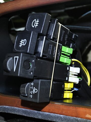 Der Schalter für die Nebelschlußleuchte ist hier zu sehen. Da sollte alles i.O. sein. Die Kabel sind schwarz und orange. Aus meiner Sicht müßte es etwas mit der Anhängerkupplung zu tun haben. Aber was ? Noch nie benutzt. Ich traue mich auch nicht sie mal versuchsweise draufzustecken, aus Sorge sie nicht wieder ab zu bekommen.