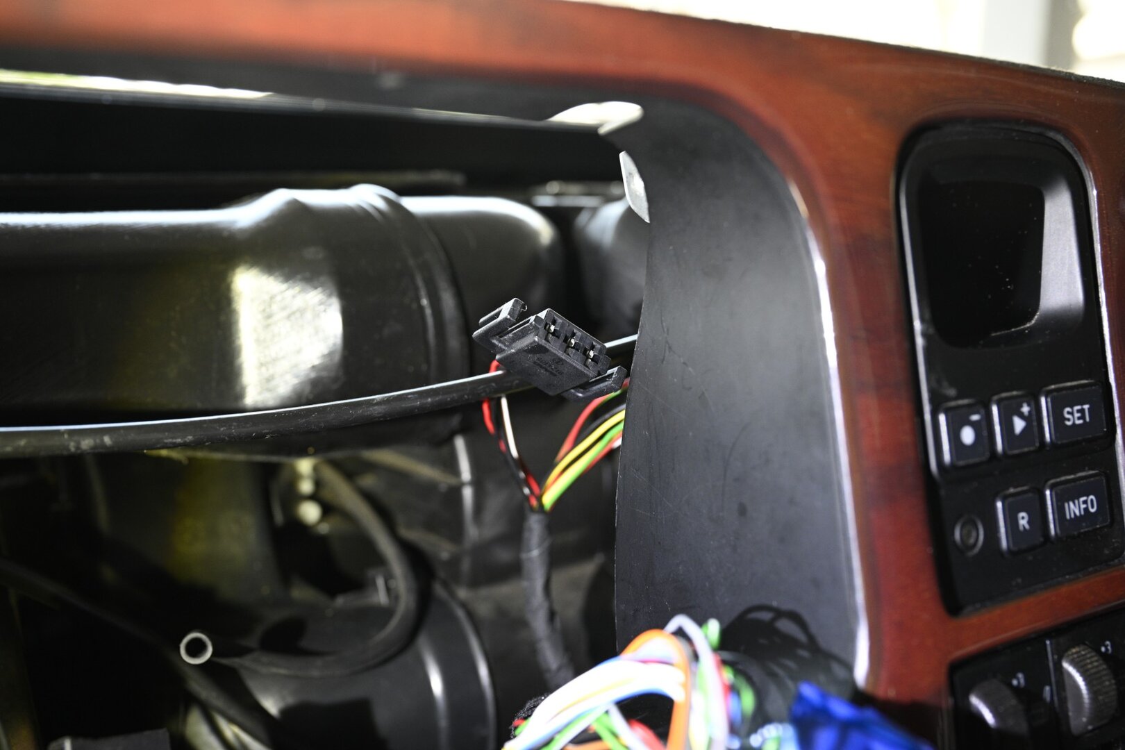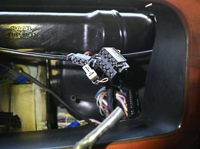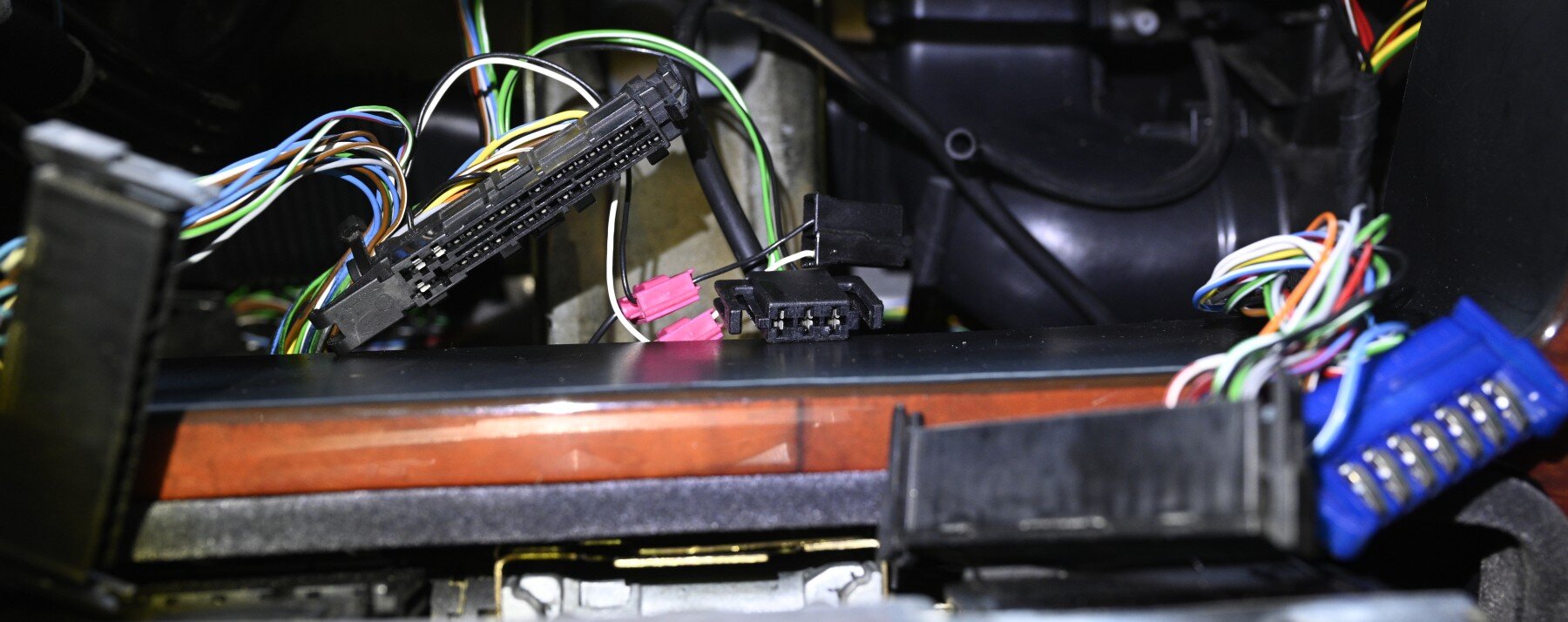 Immer noch kämpfe ich mit der Verkablung und den Steckern vom Armaturenbrett. Vielleicht könnt ihr mir jetzt final nochmals helfen. Die Stecker vom Kombiinstrument, 7 an der Zahl, müßte passen: Rechts oben führt ein Strang zur digitalen Uhr. Dort gibt es einen schmalen Stecker, bei dem ich dachte, er gehört zum Kombiinstrument. Dem ist nicht so. Ich habe nichts dafür gefunden. Wo gehört der hin ? Die Rückseite der digitalen Uhr weist keinen passenden Platz auf: Das ist Baustelle Nummer 1.