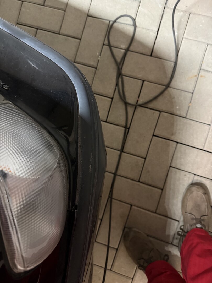 Ich plage mich derzeit ja noch etwas mit der VSS/ Funkfernbedienungs-Geschichte herum. Aber es geht auch sonst voran. Ich habe eine Blende gefunden. Ich finde es passt. Da meine Stossstange vorne rechts eine echt fiese Delle hatte, die sich leider auch nicht mit dem Heißluftfön wieder entfernen ließ, habe ich mir eine gute gebrauchte Stossstange besorgt. Ich habe alles schon mal demontiert und frage mal die Woche meinen Lacker, ob er mir die neue Gebrauchte nicht mal duschen möchte...