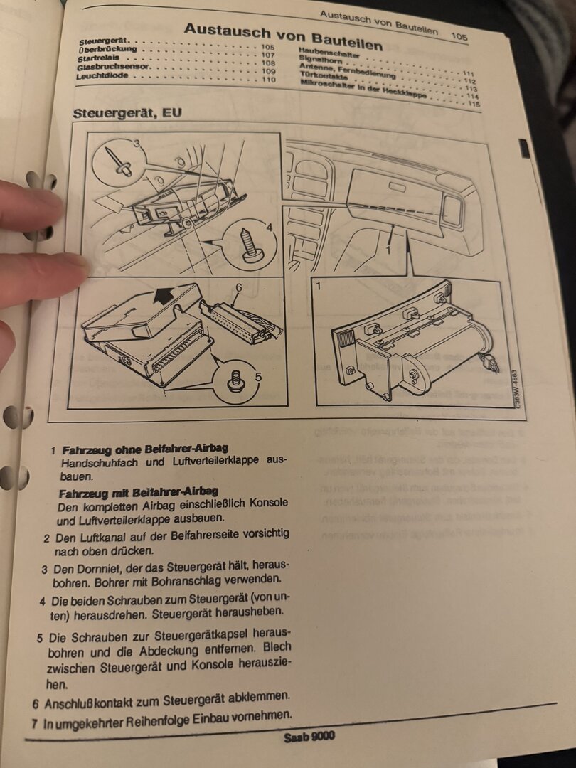 2 Mir ist gerade eingefallen, dass mir neulich jemand leihweise ein paar WHB mitgegeben hat. Hab gerade mal nachgeschaut: Da ist auch Das für die Alarmanlage MY 1995 - dabei. Wenn man sich die Zeichnungen und Beschreibungen zum Ausbau ansieht, dann steht da auch was davon, das das Steuergerät in einer Box eingepackt ist, die unten zwei Schrauben hat. Würde passen. Ich gucke mir das morgen noch mal an. Wenn es das Steuergerät ohne VSS ist, dann kann ich das ja wirklich mal mit dem Anlernen von Fröschen versuchen...
