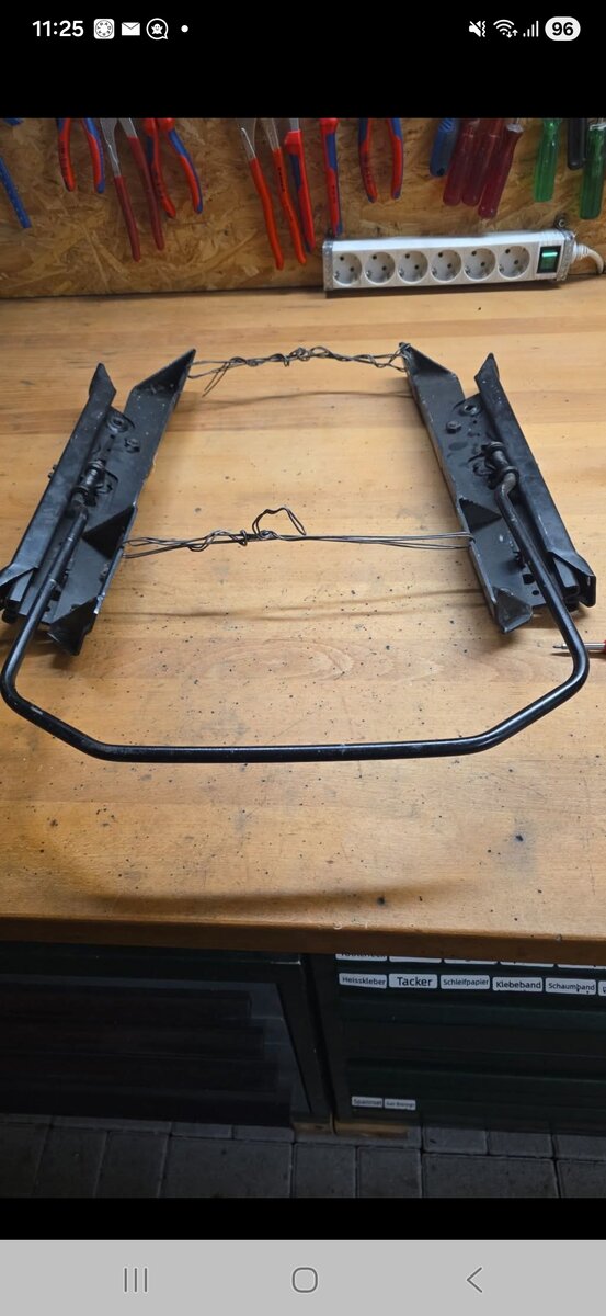 Das mit dem Teppich macht Sinn Rene. War es knifflig die Schiene einzuschweißen sodass der Sitz gerade ist?