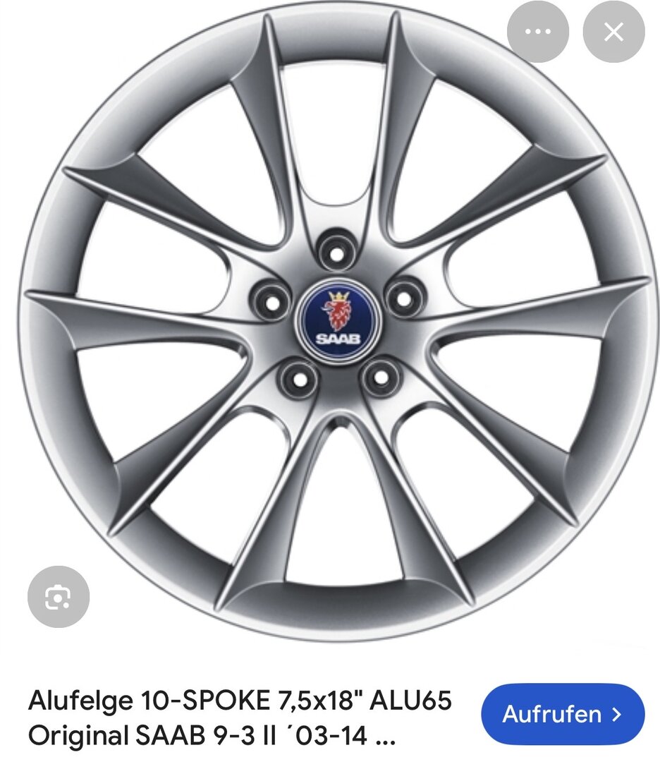 Das hier sind die Alu90, in 18 Zoll. Original vom 9-3, aber mittels Eintragung auch auf dem 9-5 fahrbar. Sieht in meinen Augen maximal schick aus und lässt den 9-5 deutlich moderner wirken.