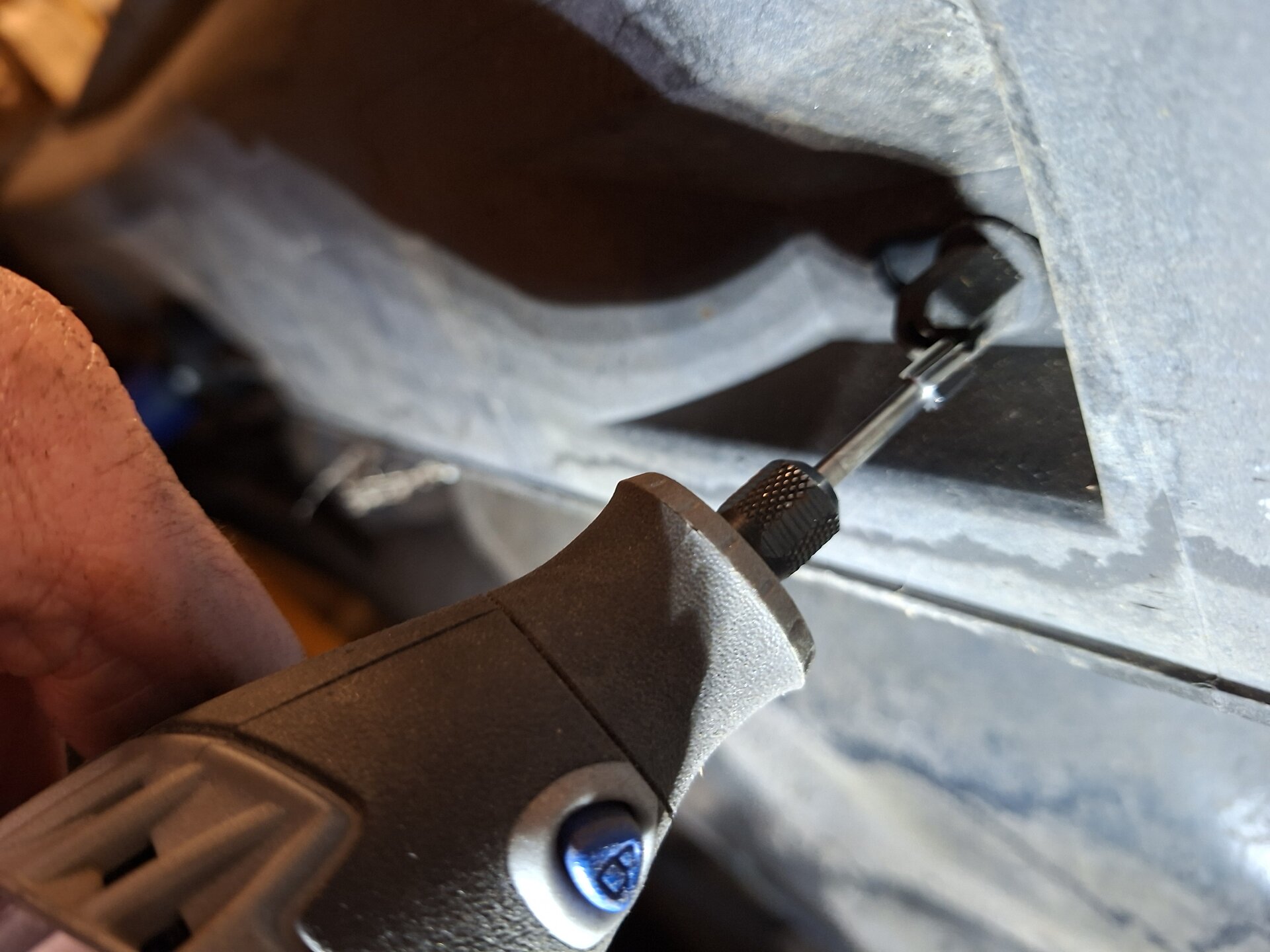 Dachte ich auch erst. Aber hat bei mir nicht funktioniert. Die Muttern sind sehr hart. Mit dem kleinen Fräser ist es viel leichter. Geht da rein wie Butter. Und man hat perfekte Kontrolle.