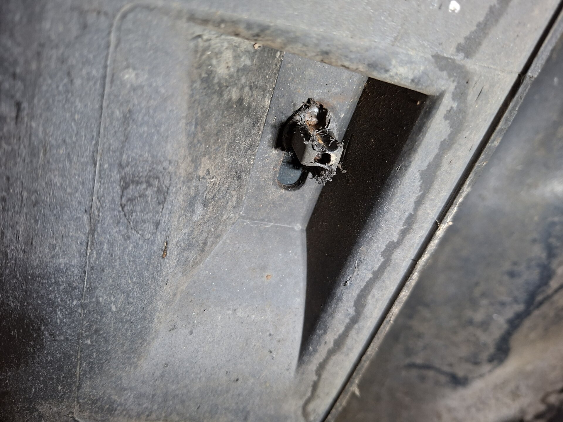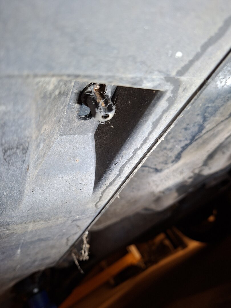 Diese hängt jetzt nur noch an dem einen vorderen Stehbolzen der weiter oben von AeroCV beschrieben wird. Dieser dreht auch bei mir im Schweller hohl. Werde nachher mal mit Gripzange versuchen.
