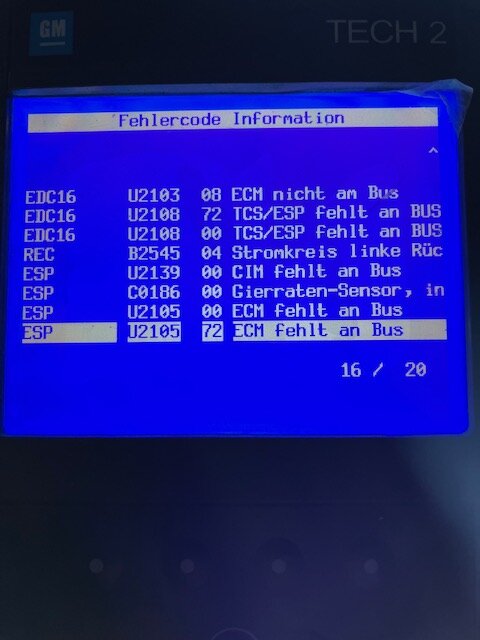 "Ding Dong ESP u. ASR defekt" + Motor geht während Fahrt aus > Tech2: viele BUS-Fehlercodes..., EDC16 gehimmelt?