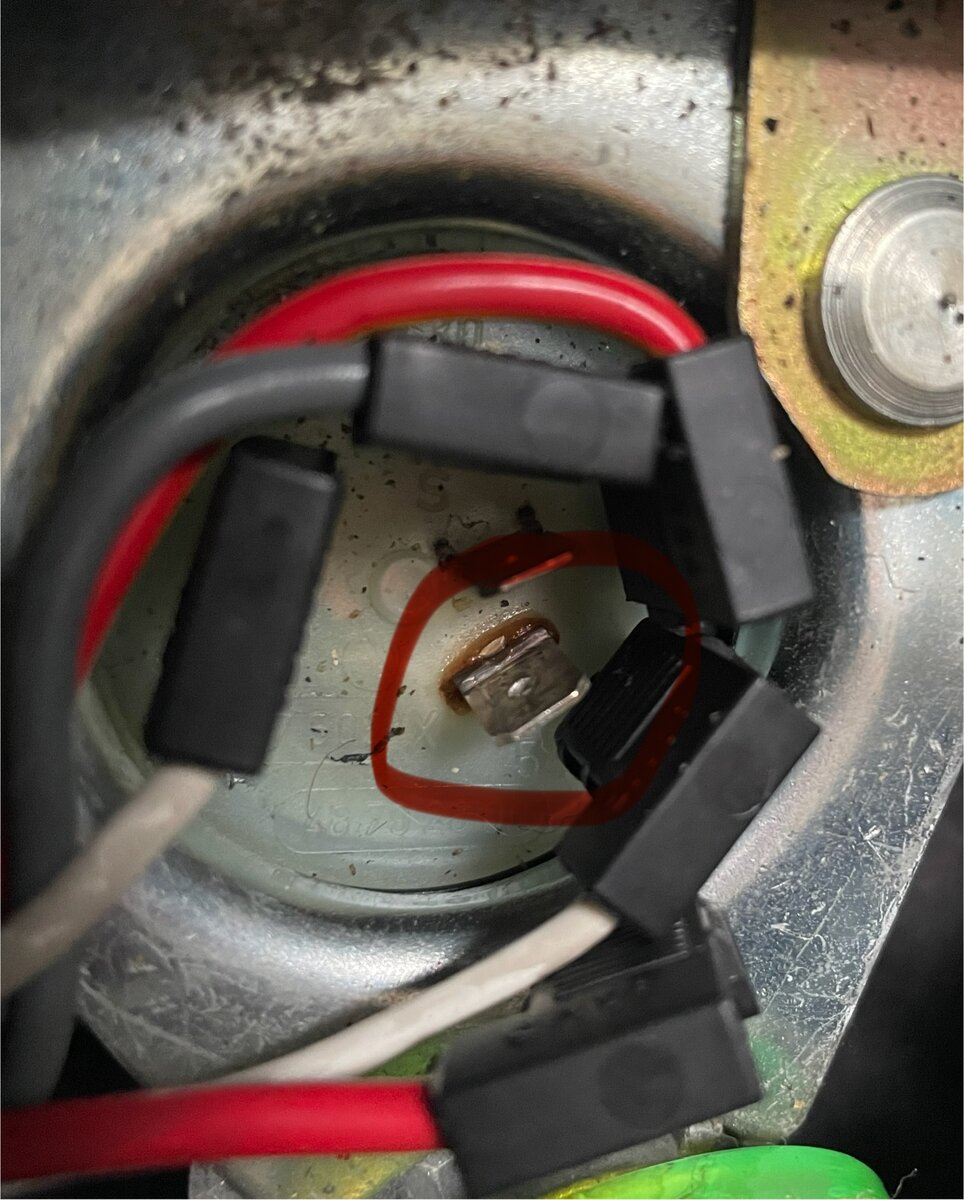 Es sieht so aus als ob der Pin unten leicht verschmort oder korrodiert ist.